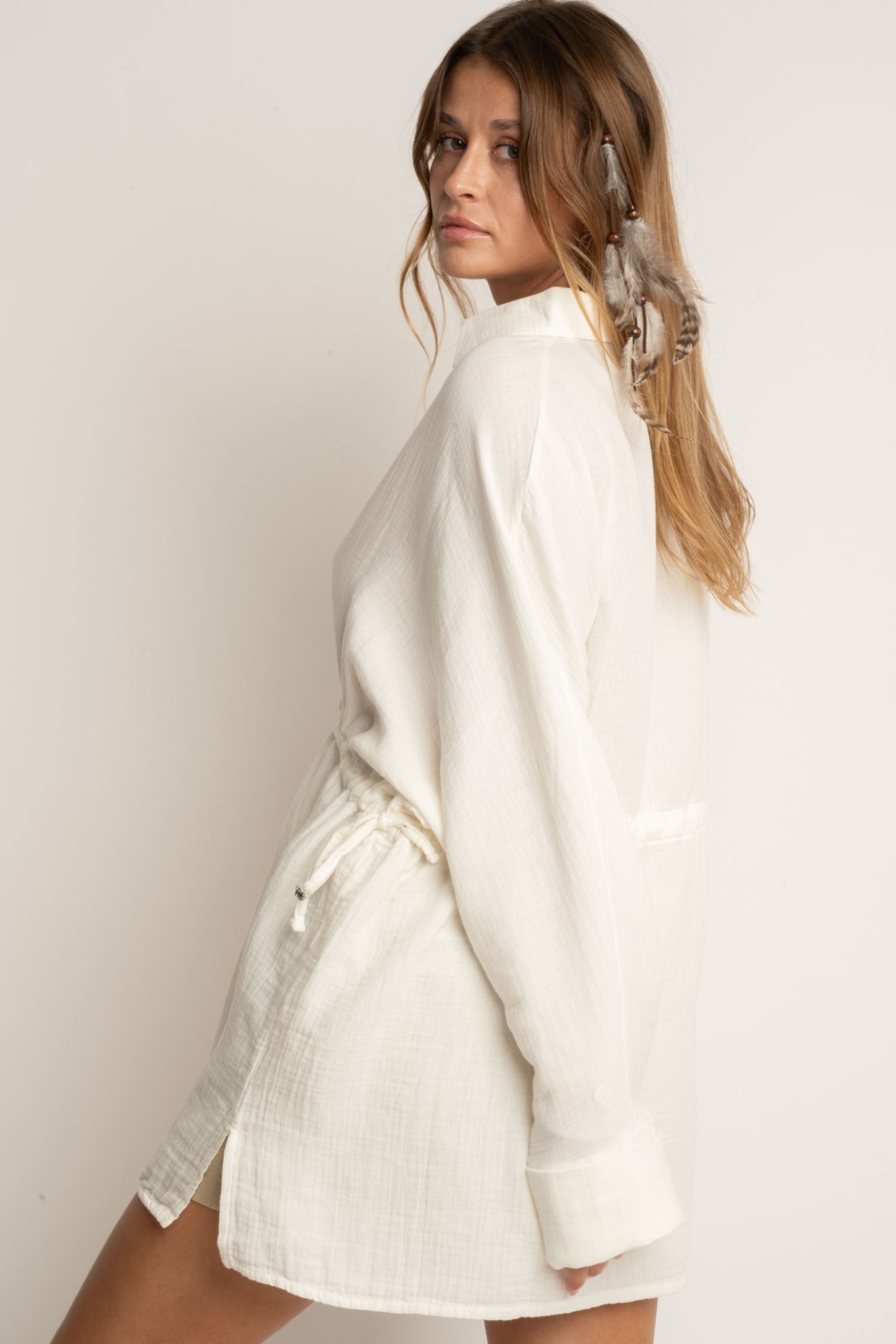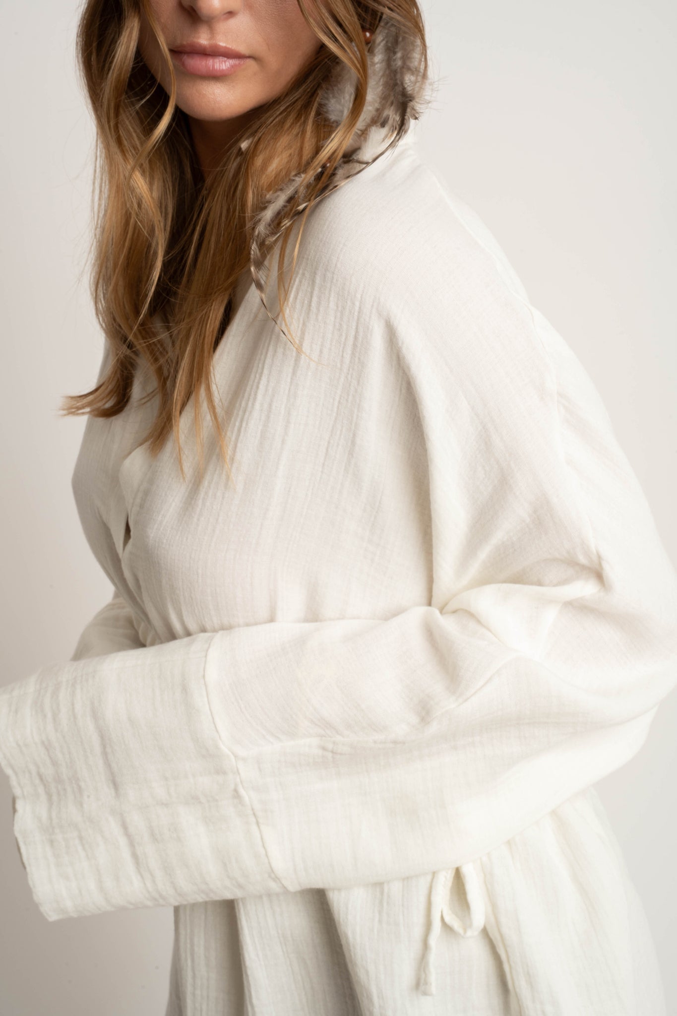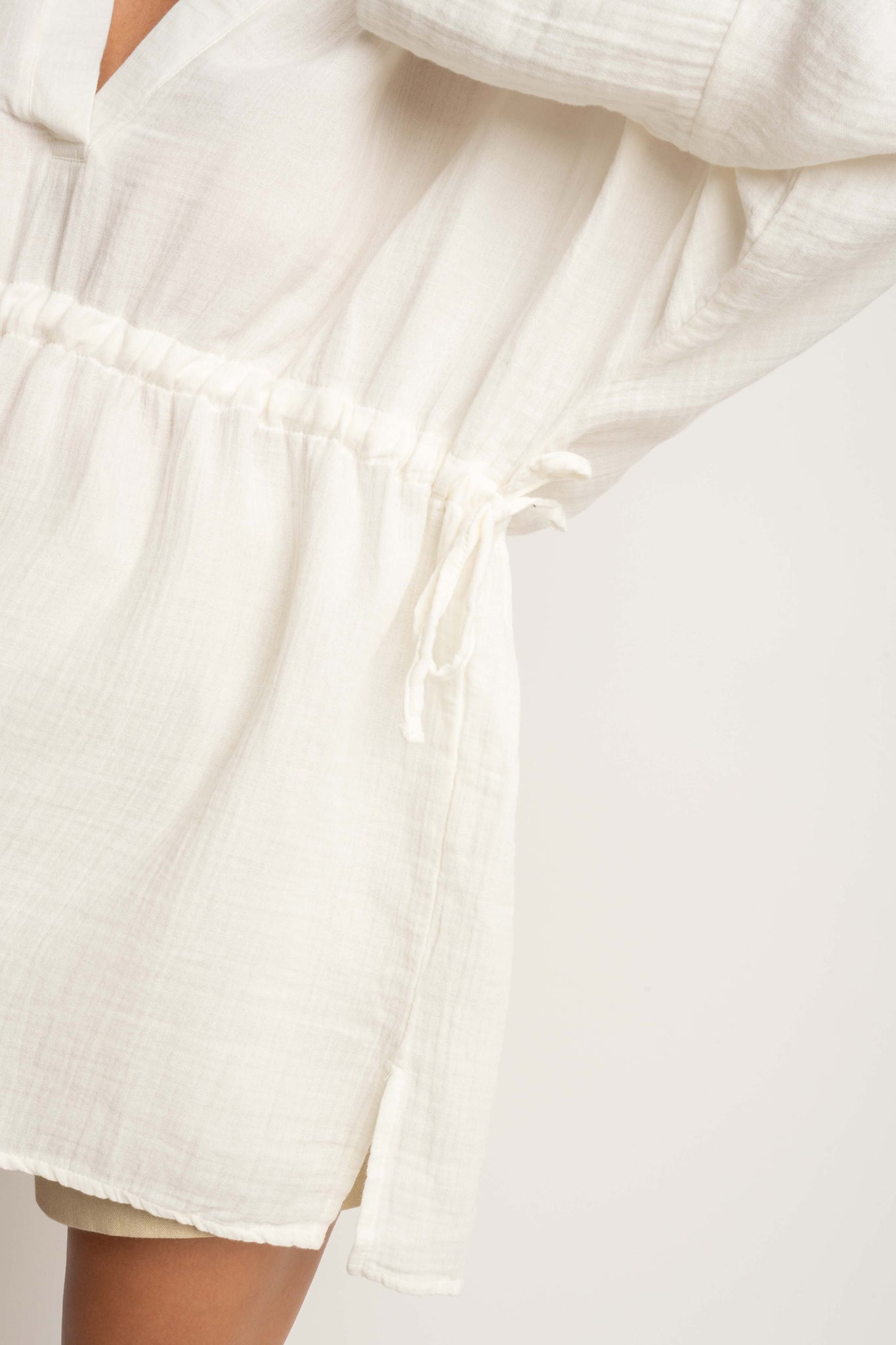 DAMSKA KOSZULA MUSLINOWA ZE SZNURKIEM ECRU - AGLAJA