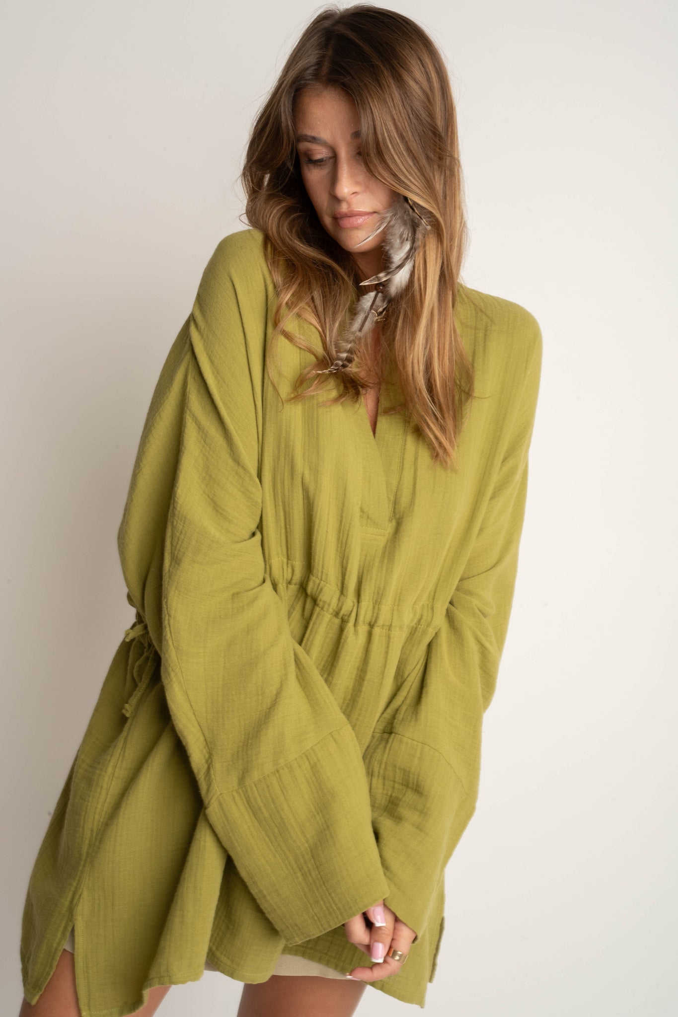 DAMSKA KOSZULA MUSLINOWA ZE SZNURKIEM ZIELONA- AGLAJA