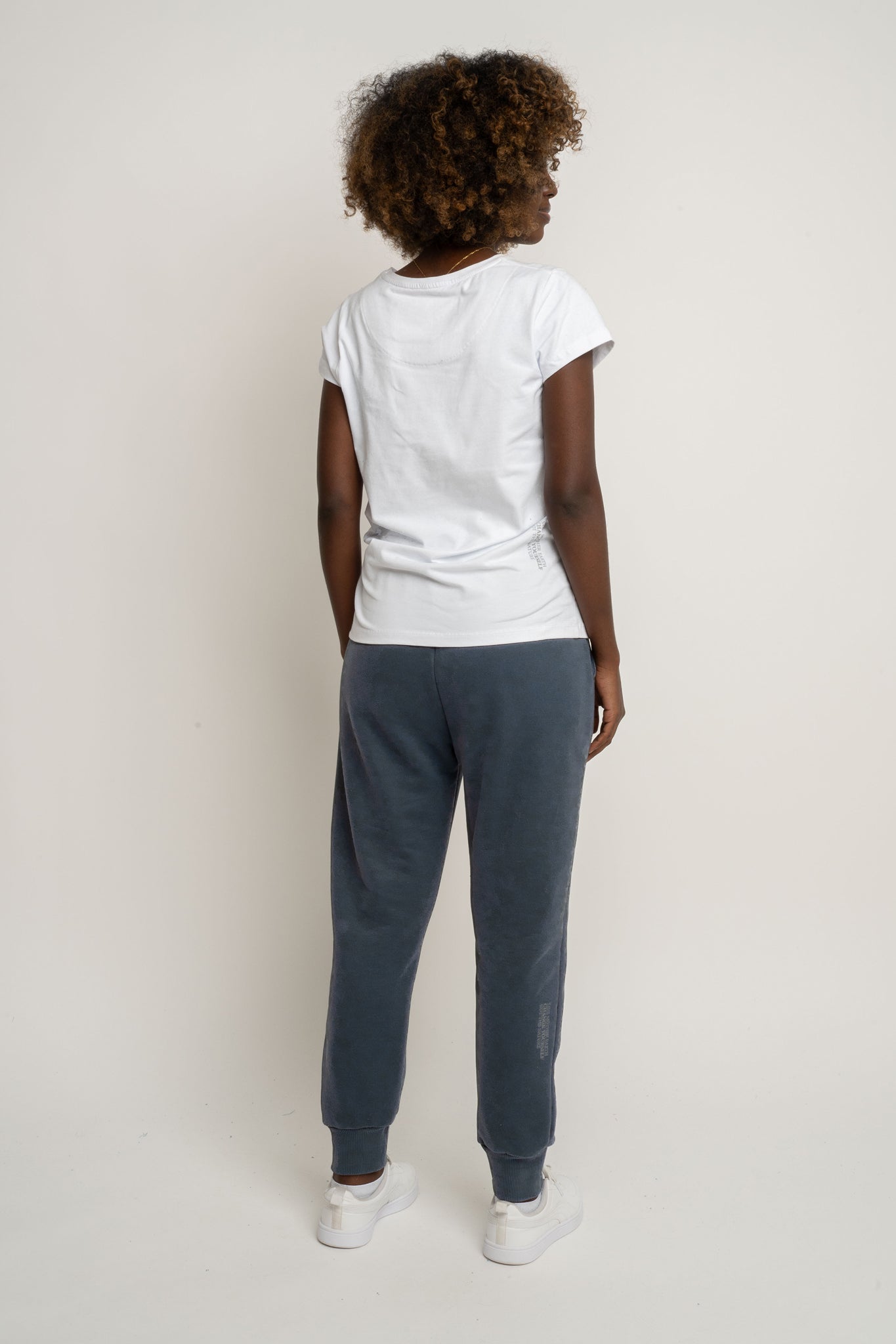 Spodnie damskie BEGERA charakteryzują się elastycznym pasem, który doskonale podkreśla talię i zapewnia idealne dopasowanie do sylwetki. Elastyczność pasa sprawia, że spodnie są wygodne do noszenia przez dłuższy czas, bez uczucia dyskomfortu. Dodatkowym atutem są ściągacze w nogawkach, które umożliwiają regulację długości spodni, dostosowując je do indywidualnych preferencji noszącej. Spodnie dresowe posiadają również praktyczne detale, takie jak dwie kieszenie po bokach. Kieszenie te nie tylko dodają nutę stylu, ale także stanowią funkcjonalne miejsce do przechowywania drobnych przedmiotów, takich jak klucze czy telefon komórkowy. Dzięki nim, nosząca spodnie kobieta może mieć przy sobie najważniejsze rzeczy, nie rezygnując z wygody i swobody ruchu. Oprócz funkcjonalności, spodnie prezentują się również modnie, dzięki starannemu wykonaniu i dopracowanym detalom. Dresowy materiał nadaje im casualowego charakteru, co sprawia, że są doskonałym wyborem zarówno na co dzień, jak i podczas aktywności fizycznej czy relaksu. Te spodnie dresowe są doskonałym dopełnieniem garderoby każdej kobiety, która ceni sobie komfort i styl. Nasza modelka ma 176 cm wzrostu i ma na sobie rozmiar XS/S.