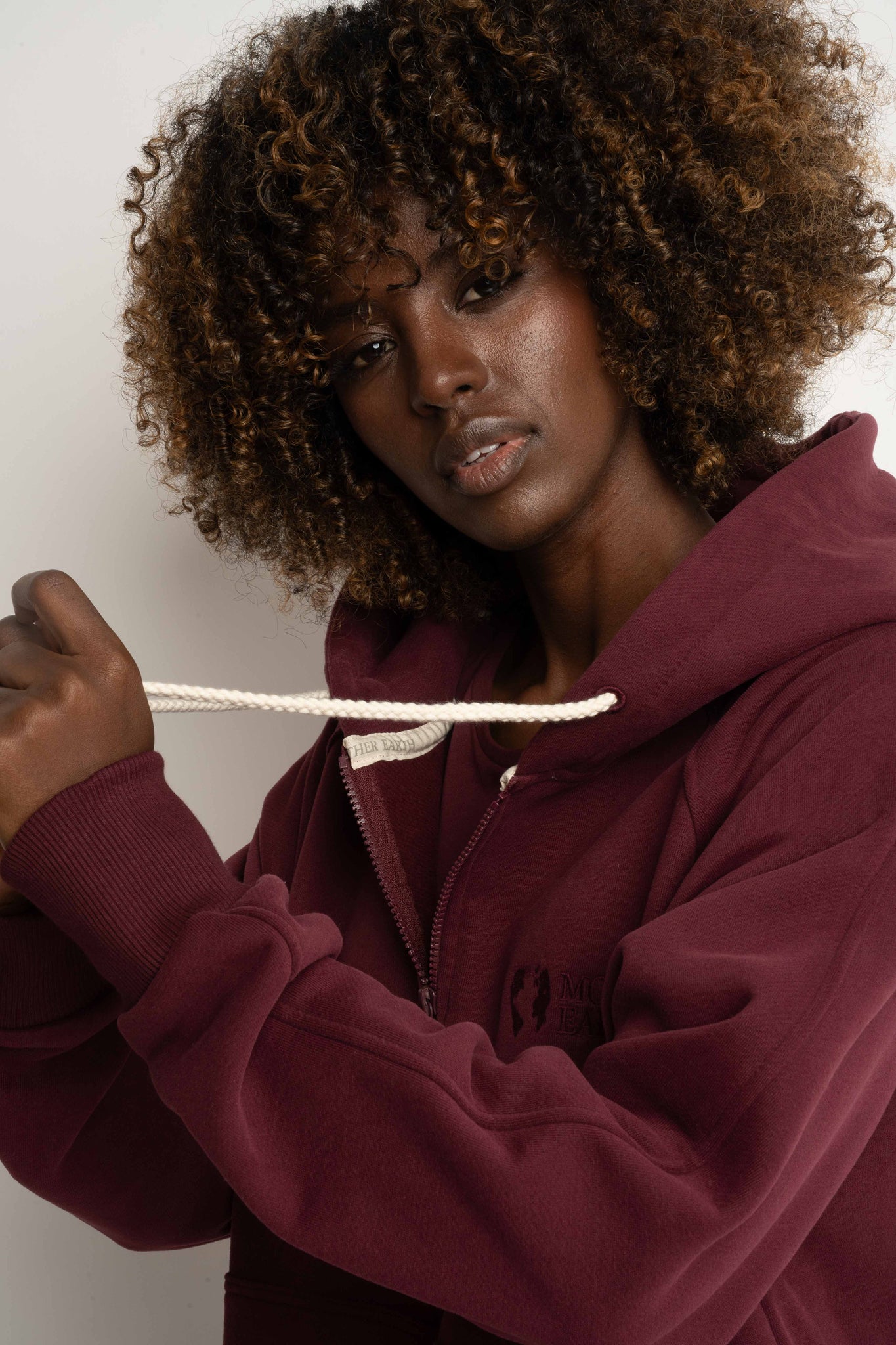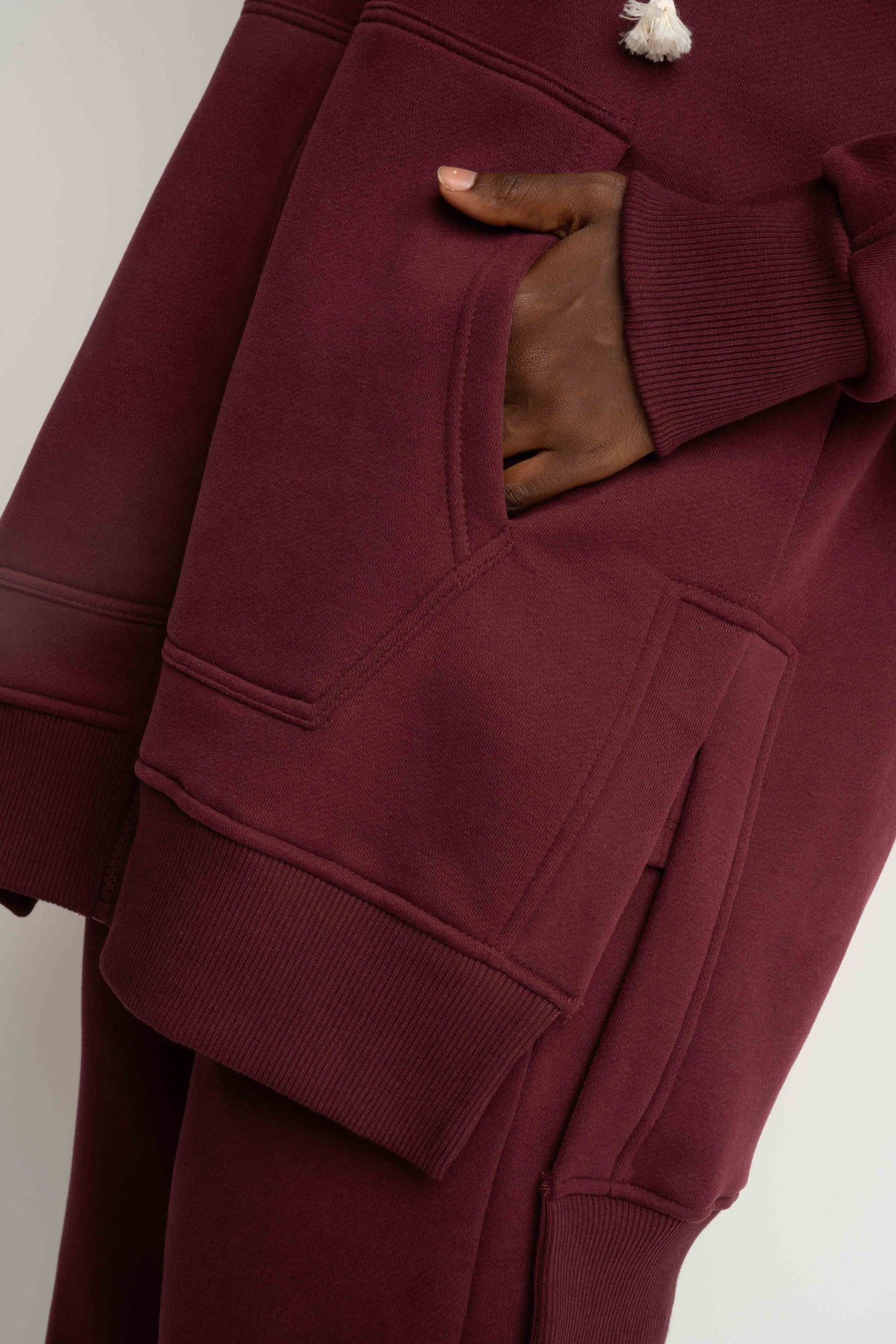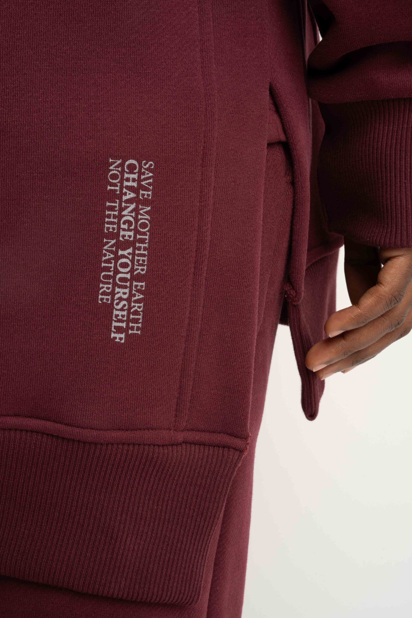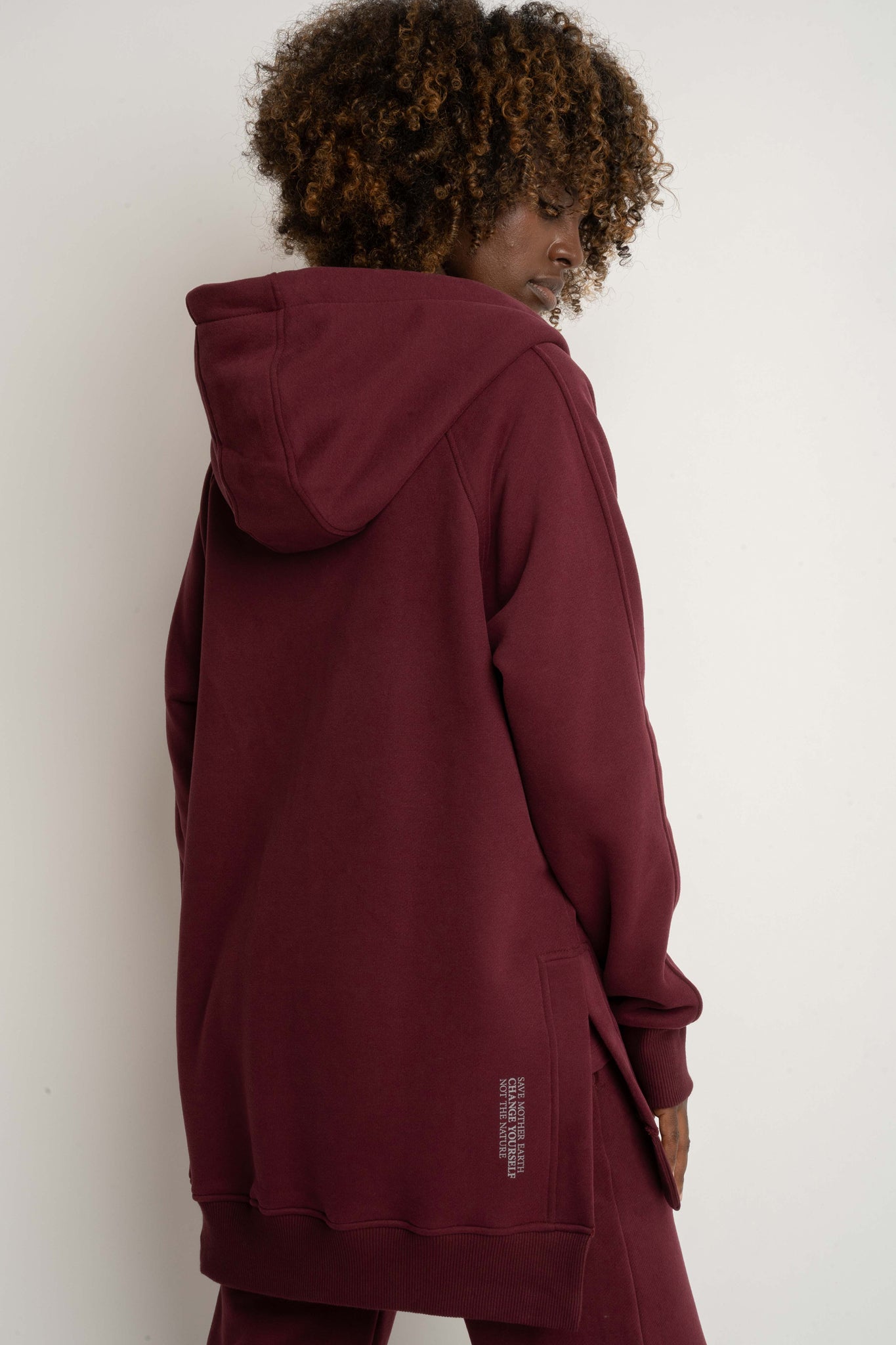 BLUZA Z KAPTUREM OVERSIZE BORDOWA - ESMERALDA
