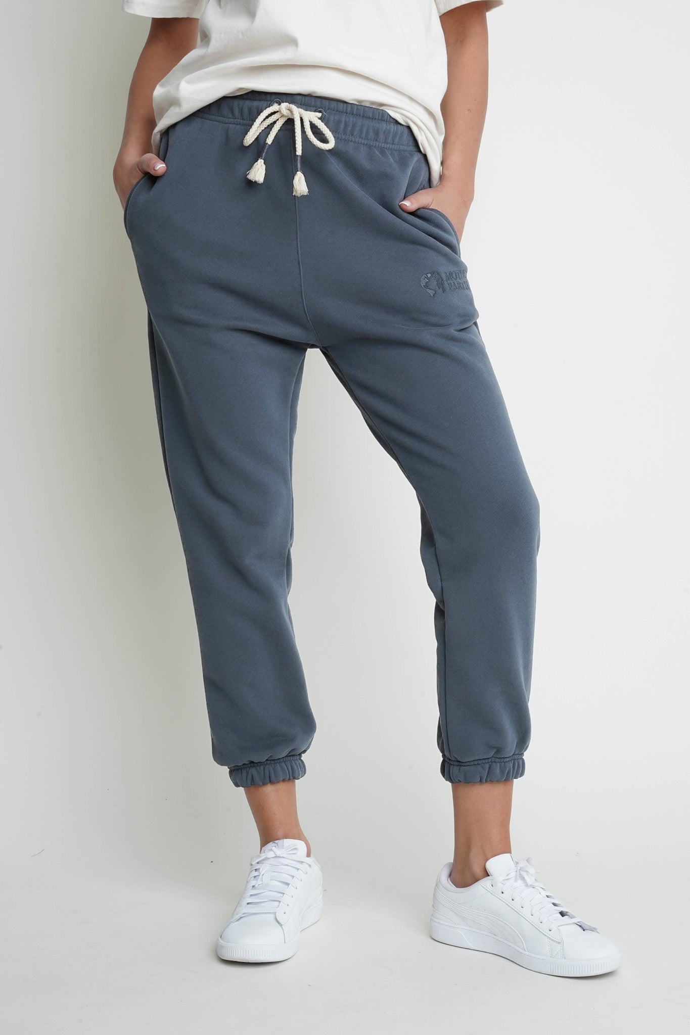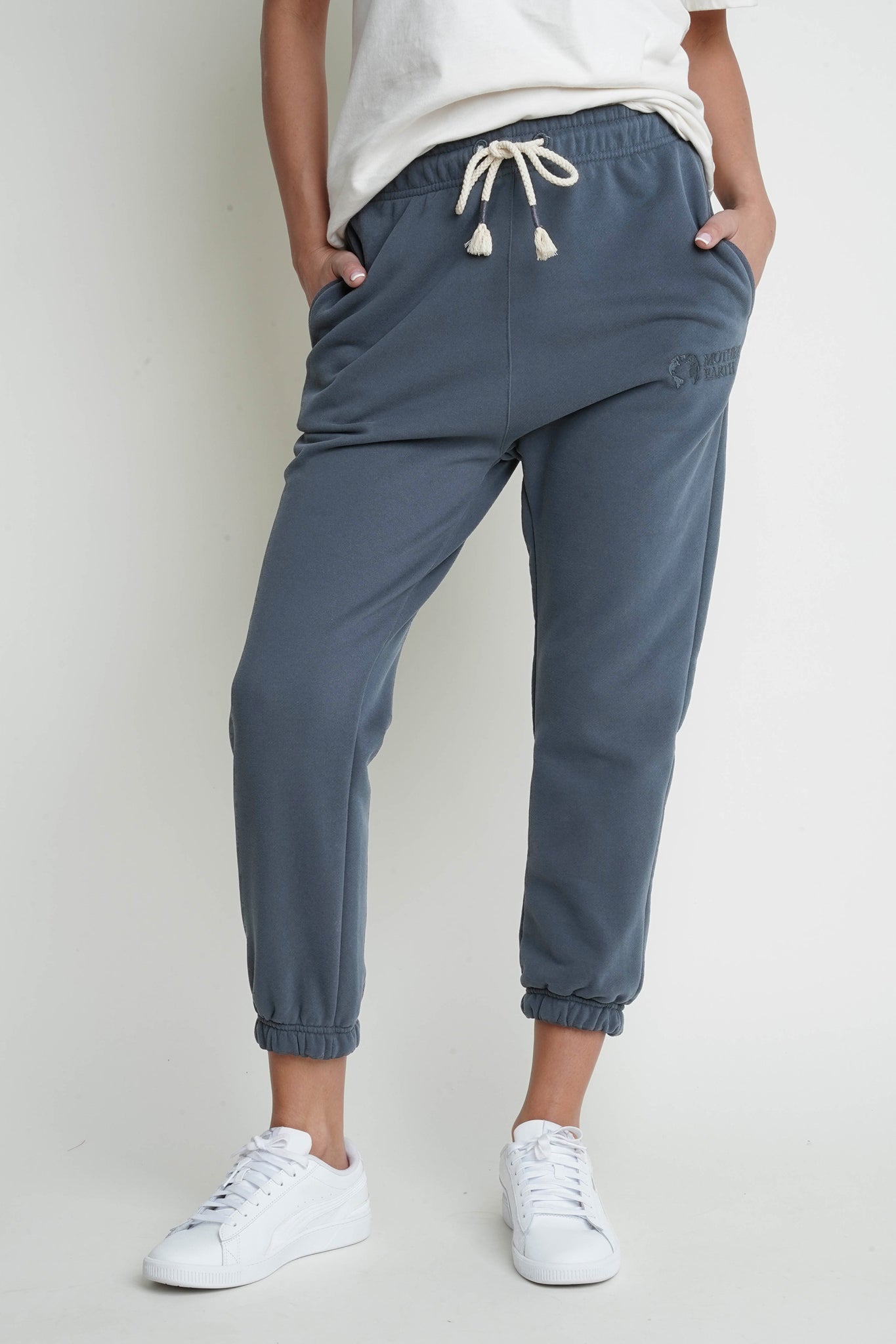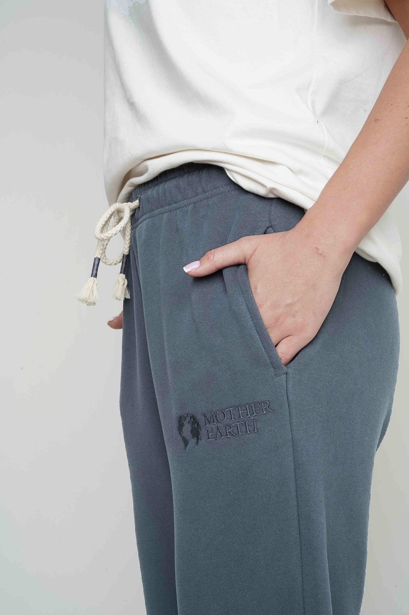 Karpatos to oversizowe spodnie dresowe o luźnym fasonie i obniżonym kroku. Zapewniają pełną swobodę ruchów i wygodę. Mają miękką gumę w pasie oraz podobne gumy na nogawkach. W pasie jest bawełniany sznurek zakończony kolorowymi owijkami. Dodatkowym atutem są pojemne kieszenie z przodu. Pod jedną z nich znajduje się ozdobny haft wykonany nicią w tym samym kolorze co dzianina. Spodnie są idealne do codziennych stylizacji. Spodnie uszyte są z naszej flagowej, grubej dzianiny 320g/m2, która nas wyróżnia. Jest ona gładka, ale przy tym bardzo mięsista. Od spodu posiada charakterystyczny splot diagonalny pokryty lekkim meszkiem, który w przyjemny sposób otula naszą skórę. Wierzchnia strona dzianiny także jest bardzo miła w dotyku, wykończona jest delikatnym meszkiem potocznie zwanym efektem brzoskwini, który nadaje jej wyjątkowej delikatności. Aby zachować ten efekt na dłużej i zredukować zjawisko mechacenia po praniu, w produkcji dzianiny zostały zastosowane specjalne enzymy, które świetnie spełniają swoją rolę. Naszą kolekcję spodni dresowych w 100% opieramy właśnie na tej wyjątkowej dzianinie. Z tej samej dzianiny szyjemy również wszystkie nasze bluzy. I na koniec najważniejsza kwestia- zgodnie z ideą Mother Earth 10% składu dzianiny stanowi poliester uzyskany z recyklingu. Nasza modelka ma 176 cm. wzrostu i ma na sobie rozmiar M/L.