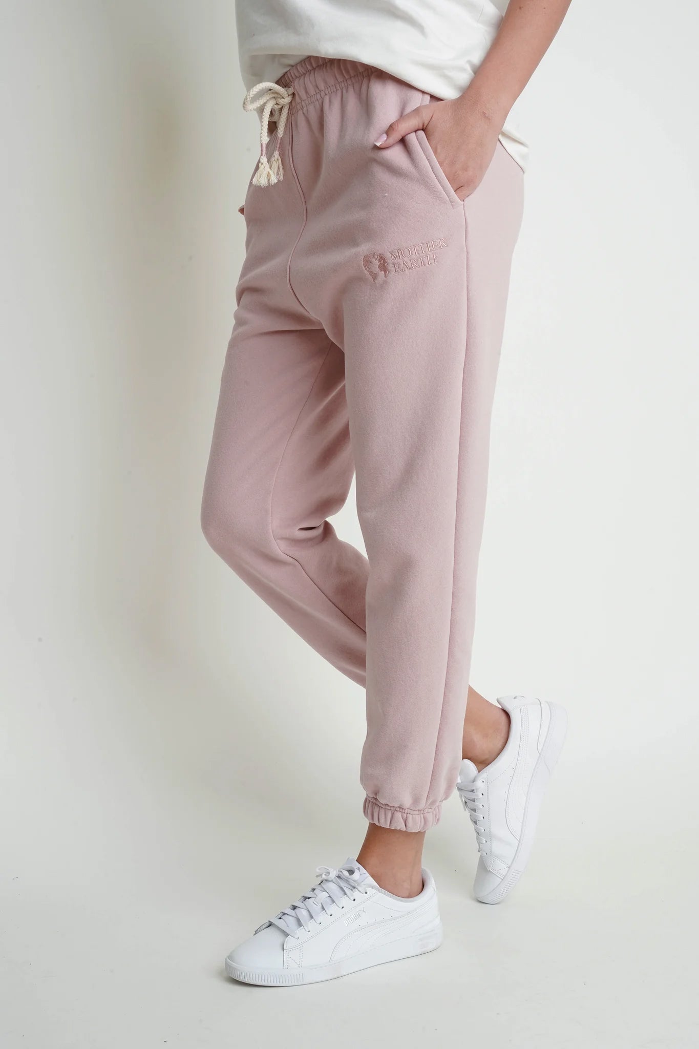 Karpatos to oversizowe spodnie dresowe o luźnym fasonie i obniżonym kroku. Zapewniają pełną swobodę ruchów i wygodę. Mają miękką gumę w pasie oraz podobne gumy na nogawkach. W pasie jest bawełniany sznurek zakończony kolorowymi owijkami. Dodatkowym atutem są pojemne kieszenie z przodu. Pod jedną z nich znajduje się ozdobny haft wykonany nicią w tym samym kolorze co dzianina. Spodnie są idealne do codziennych stylizacji. Spodnie uszyte są z naszej flagowej, grubej dzianiny 320g/m2, która nas wyróżnia. Jest ona gładka, ale przy tym bardzo mięsista. Od spodu posiada charakterystyczny splot diagonalny pokryty lekkim meszkiem, który w przyjemny sposób otula naszą skórę. Wierzchnia strona dzianiny także jest bardzo miła w dotyku, wykończona jest delikatnym meszkiem potocznie zwanym efektem brzoskwini, który nadaje jej wyjątkowej delikatności. Aby zachować ten efekt na dłużej i zredukować zjawisko mechacenia po praniu, w produkcji dzianiny zostały zastosowane specjalne enzymy, które świetnie spełniają swoją rolę. Naszą kolekcję spodni dresowych w 100% opieramy właśnie na tej wyjątkowej dzianinie. Z tej samej dzianiny szyjemy również wszystkie nasze bluzy. I na koniec najważniejsza kwestia- zgodnie z ideą Mother Earth 10% składu dzianiny stanowi poliester uzyskany z recyklingu. Nasza modelka ma 176 cm. wzrostu i ma na sobie rozmiar M/L.
