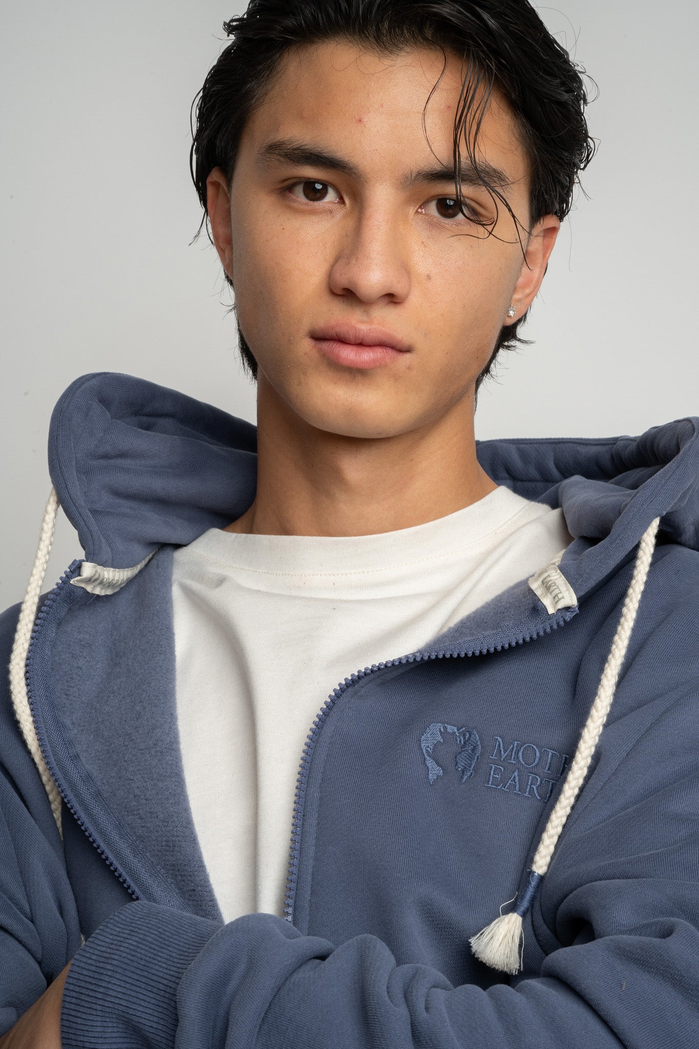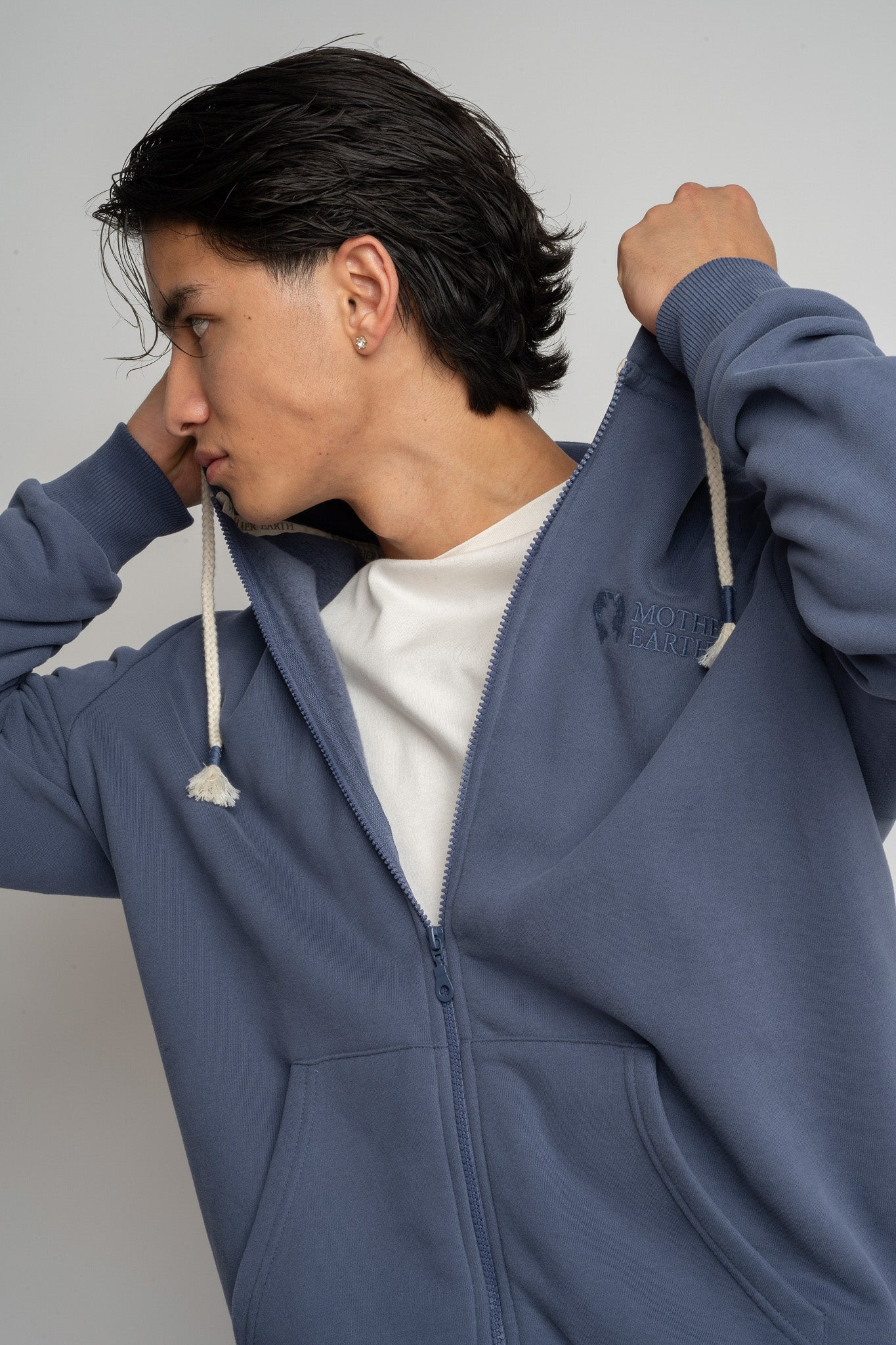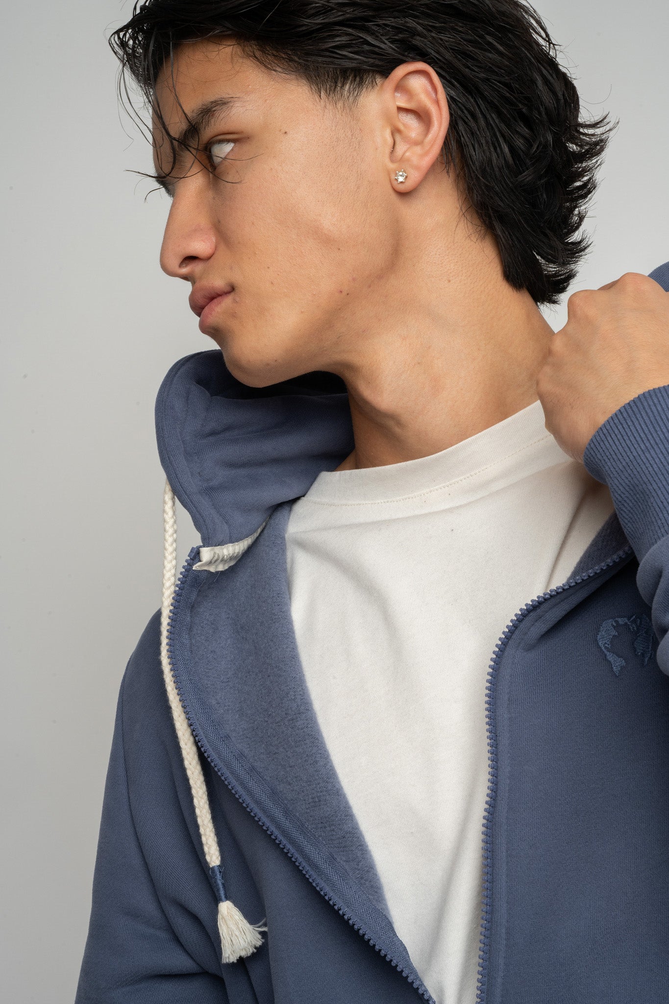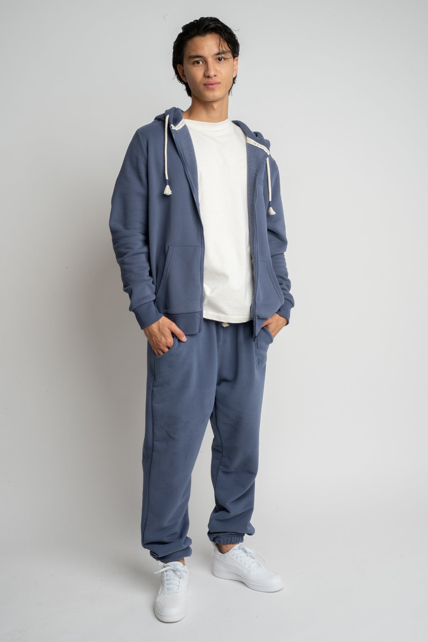 Model ten wyróżnia się prostym, ale dopracowanym krojem, który zapewnia swobodę ruchów i dobrze układa się na sylwetce. Z przodu znajduje się suwak na całej długości, a klasyczny kaptur z grubym sznurkiem zakończonym dekoracyjnymi troczkami dodaje całości casualowego charakteru. Z przodu umieszczono dwie pojemne kieszenie.