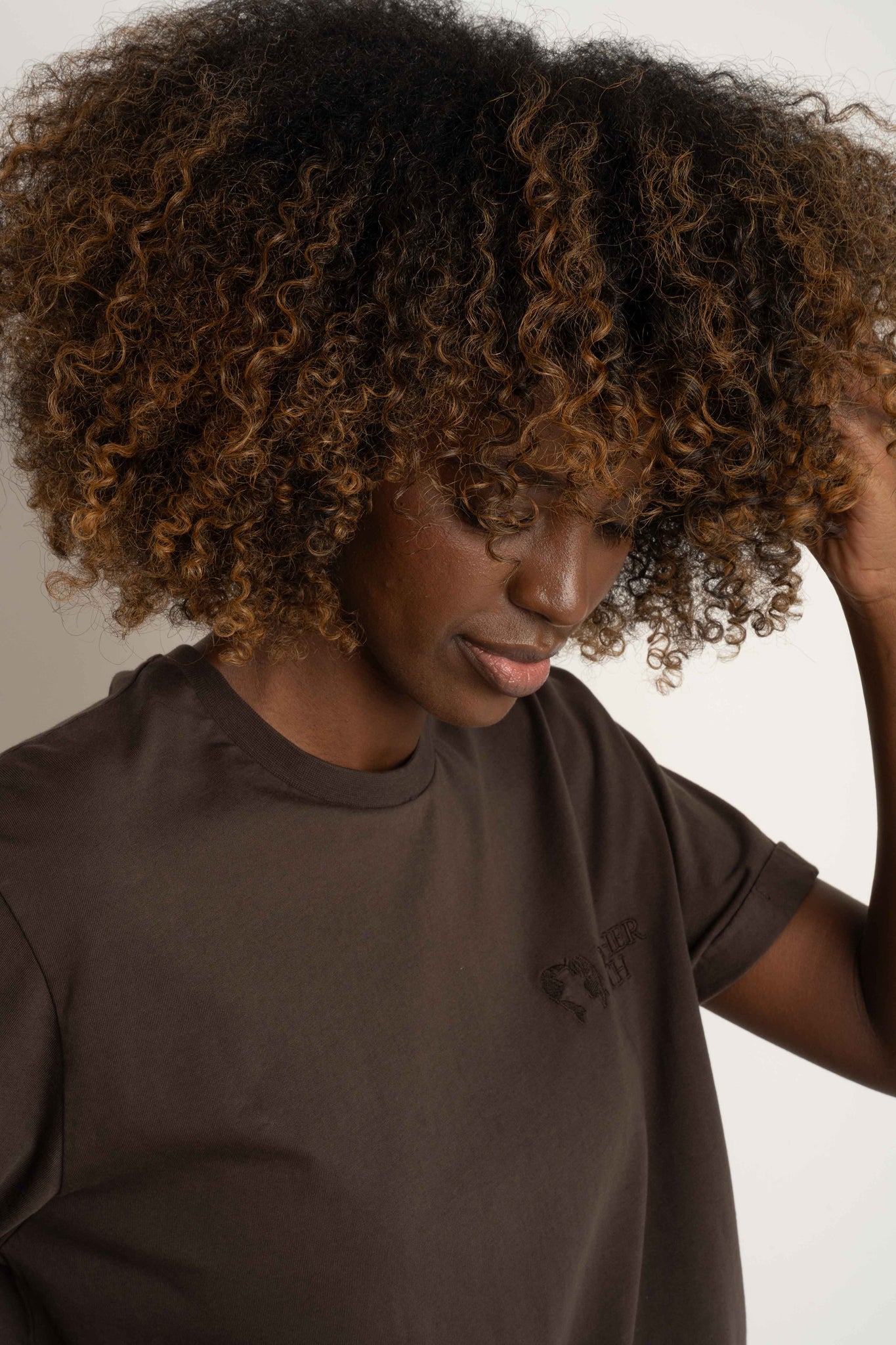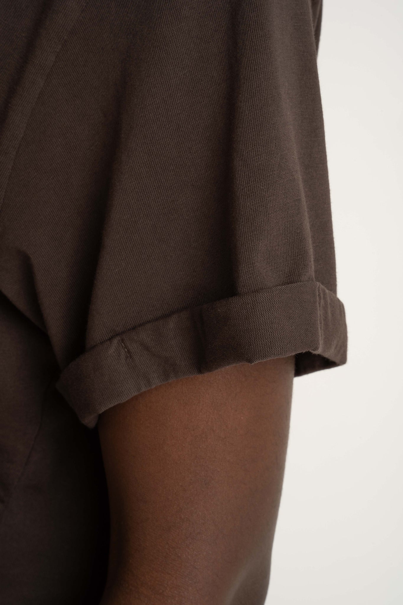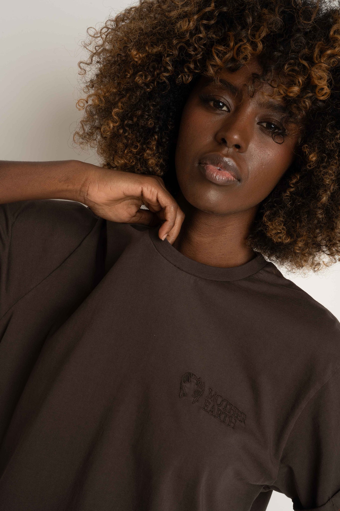 T-SHIRT OVERSIZE Z DELIKATNYM EFEKTEM SPRANIA CIEMNOBRĄZOWY - MORAINE