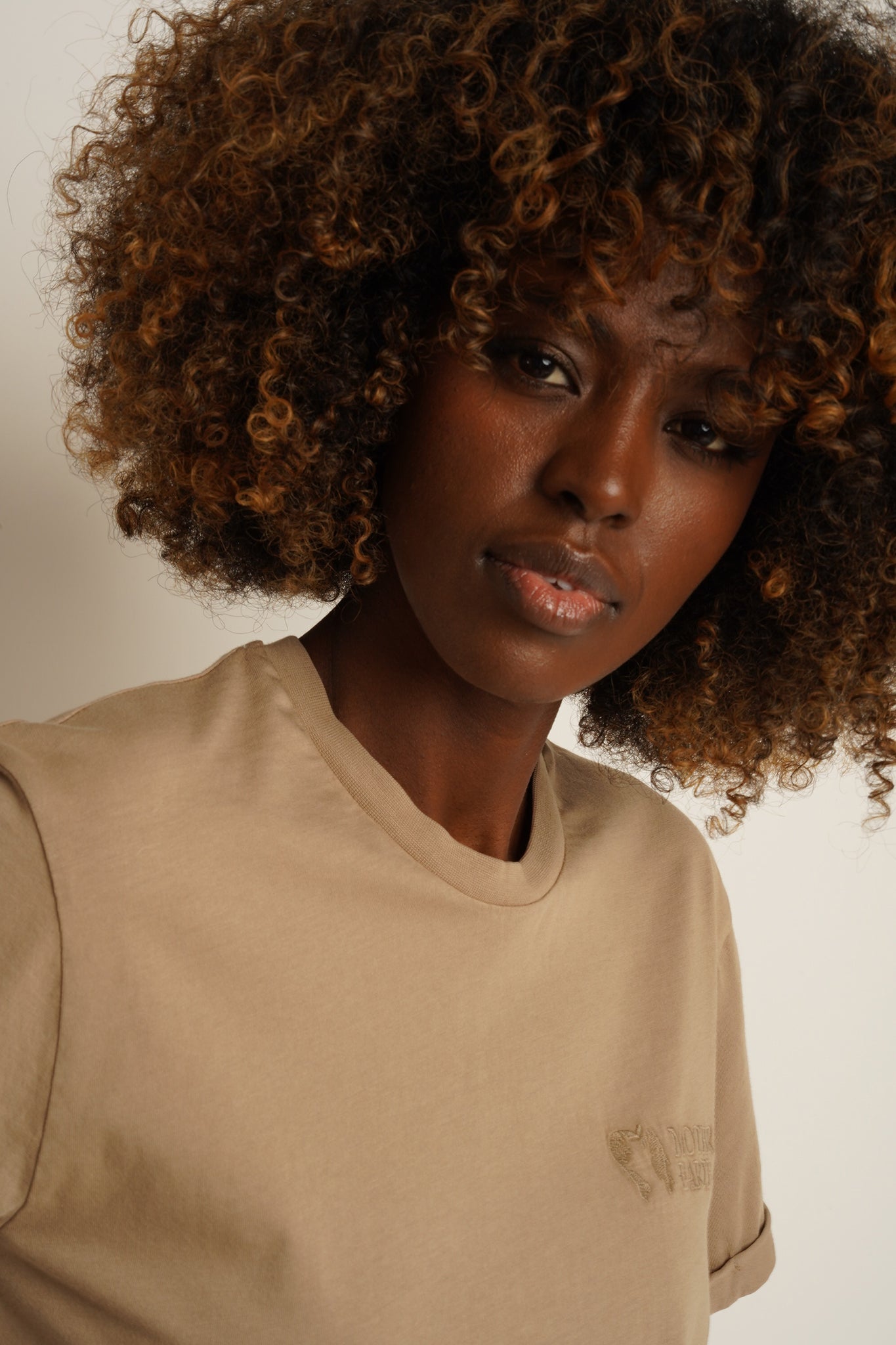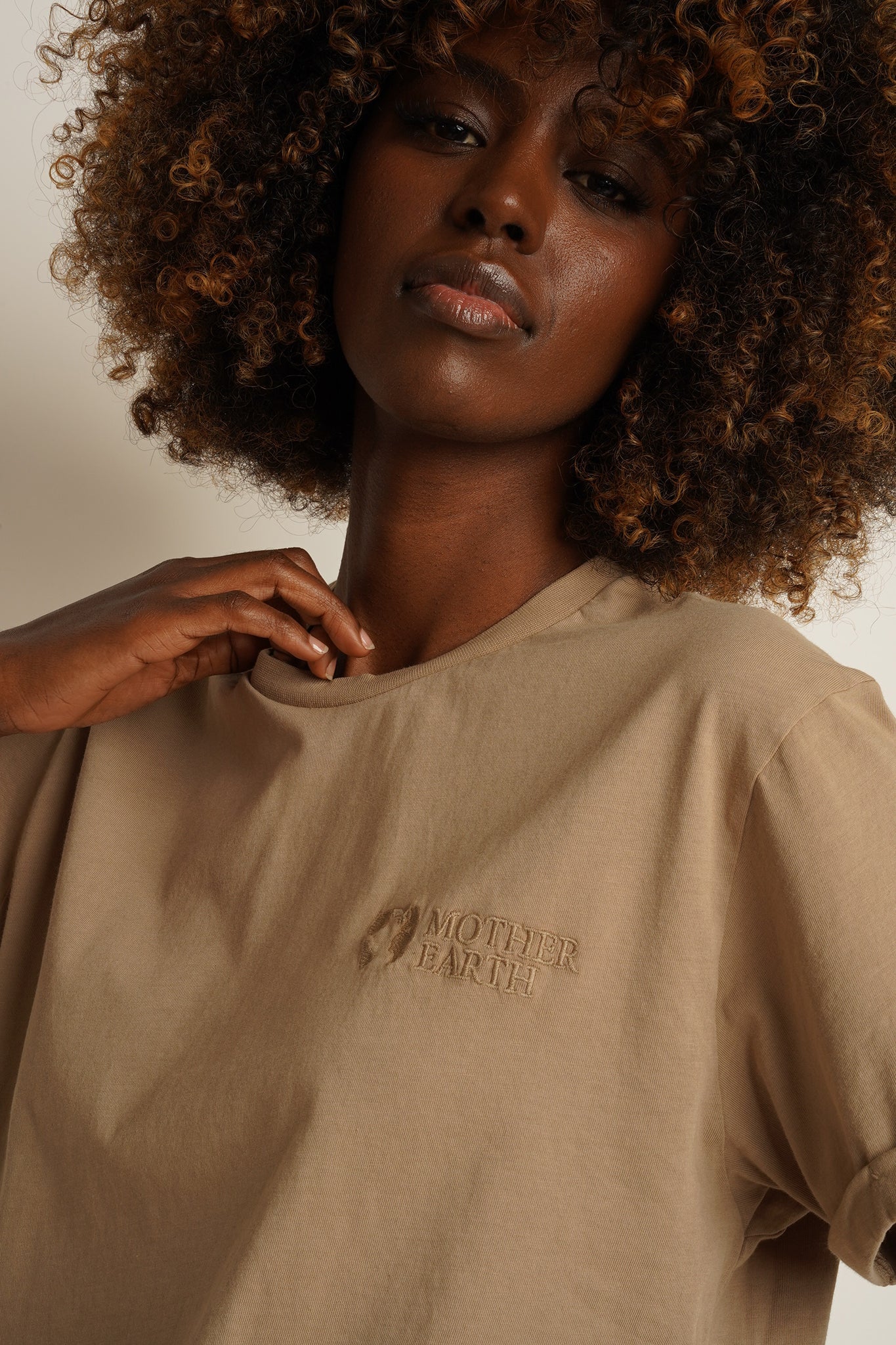 T-SHIRT OVERSIZE Z DELIKATNYM EFEKTEM SPRANIA BEŻOWY - MORAINE