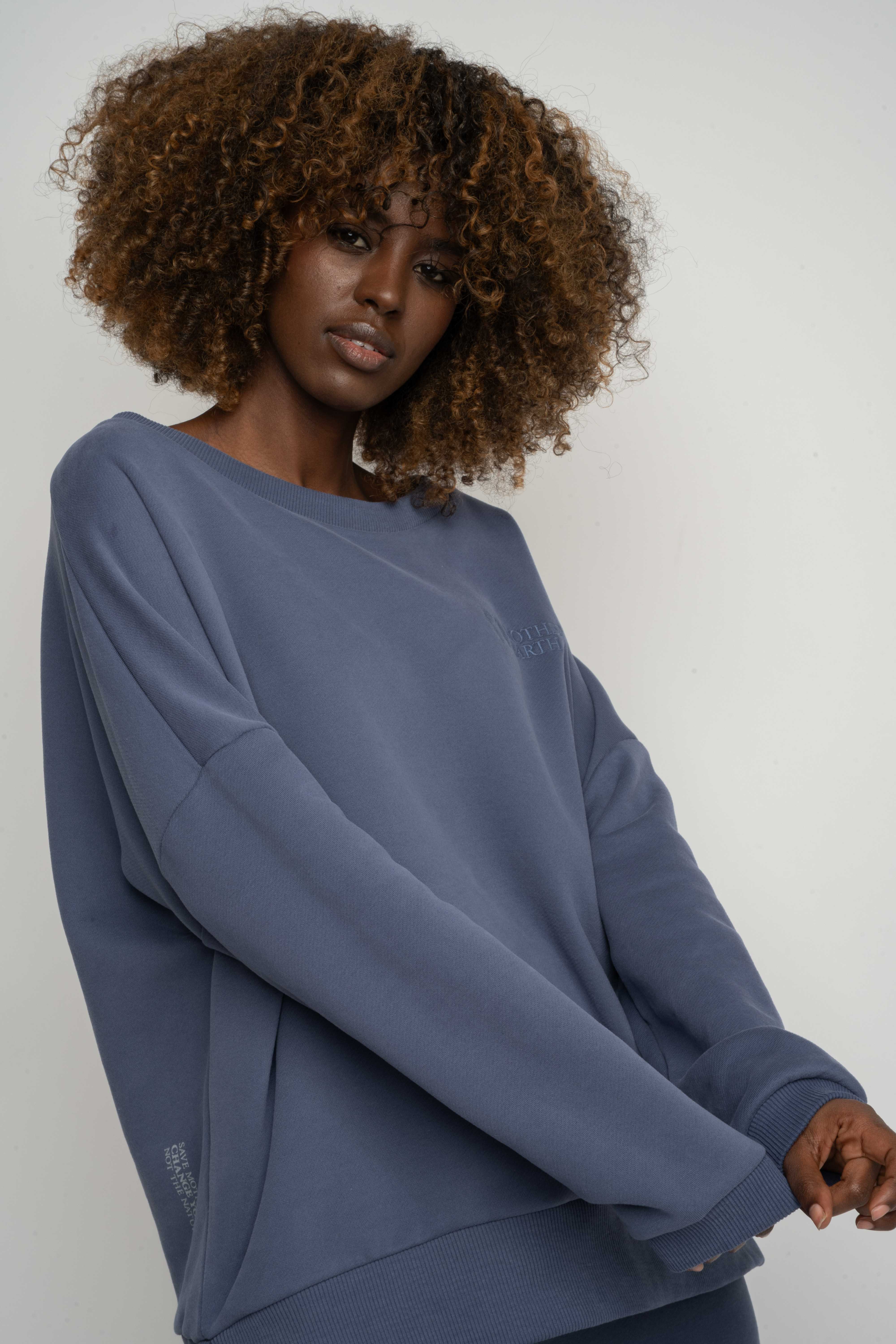 Mull to jedna z szerszych bluz. Ma klasyczną długość. Rękaw jest lekko opadający, prosty, zakończony prążkowanym ściągaczem. Dół również wykończono prążkowanym ściągaczem, a subtelne rozcięcia po bokach dodają całości lekkości i kobiecego charakteru. Z przodu znajduje się haftowane logo, a luźny dekolt zwiększa wygodę noszenia. Bluza uszyta jest z naszej flagowej, grubej dzianiny, która nas wyróżnia. Jest ona gładka, ale przy tym bardzo mięsista. Od spodu posiada charakterystyczny splot diagonalny pokryty lekkim meszkiem, który w przyjemny sposób otula naszą skórę. Wierzchnia strona dzianiny także jest bardzo miła w dotyku, wykończona jest delikatnym meszkiem potocznie zwanym efektem brzoskwini "peach touch" , który nadaje jej wyjątkowej delikatności. Aby zachować ten efekt na dłużej i zredukować zjawisko mechacenia po praniu, w produkcji dzianiny zostały zastosowane specjalne enzymy, które świetnie spełniają swoją rolę. Naszą kolekcję w 90% opieramy właśnie na tej wyjątkowej dzianinie. I na koniec najważniejsza kwestia- zgodnie z ideą Mother Earth 10% składu dzianiny stanowi poliester uzyskany z recyklingu. Nasza modelka ma 167 cm. wzrostu i ma na sobie rozmiar M/L.