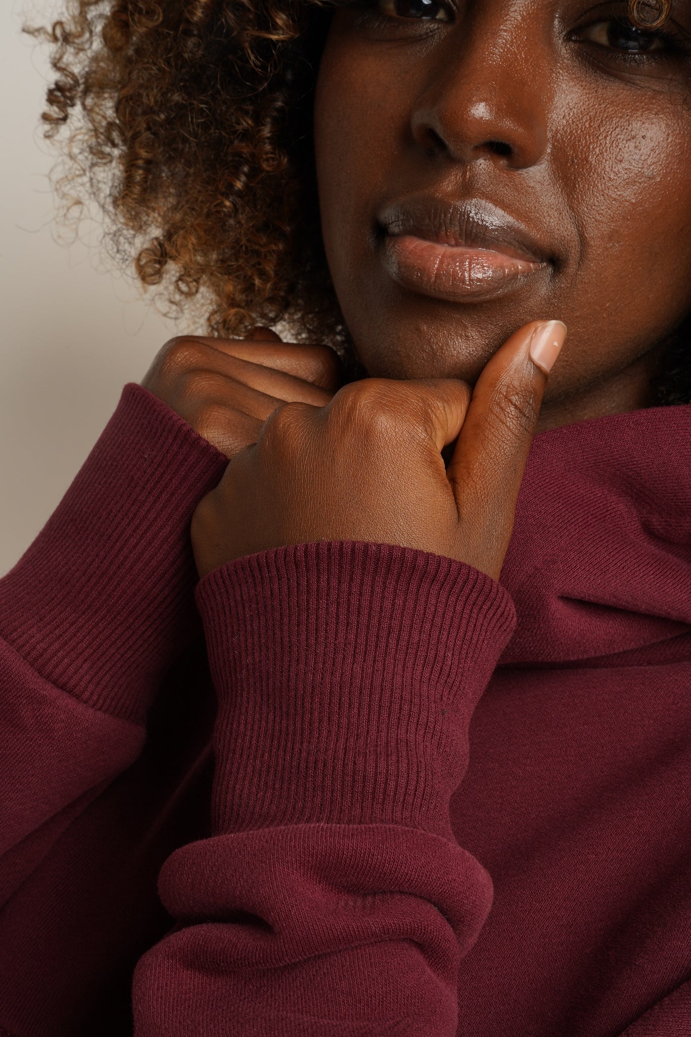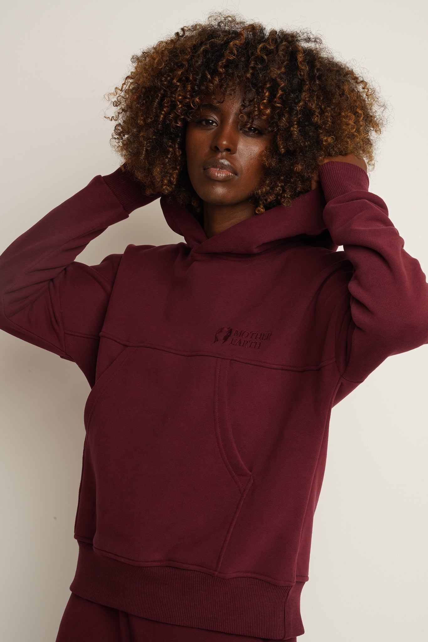 BLUZA Z KAPTUREM BORDOWA - MURIA