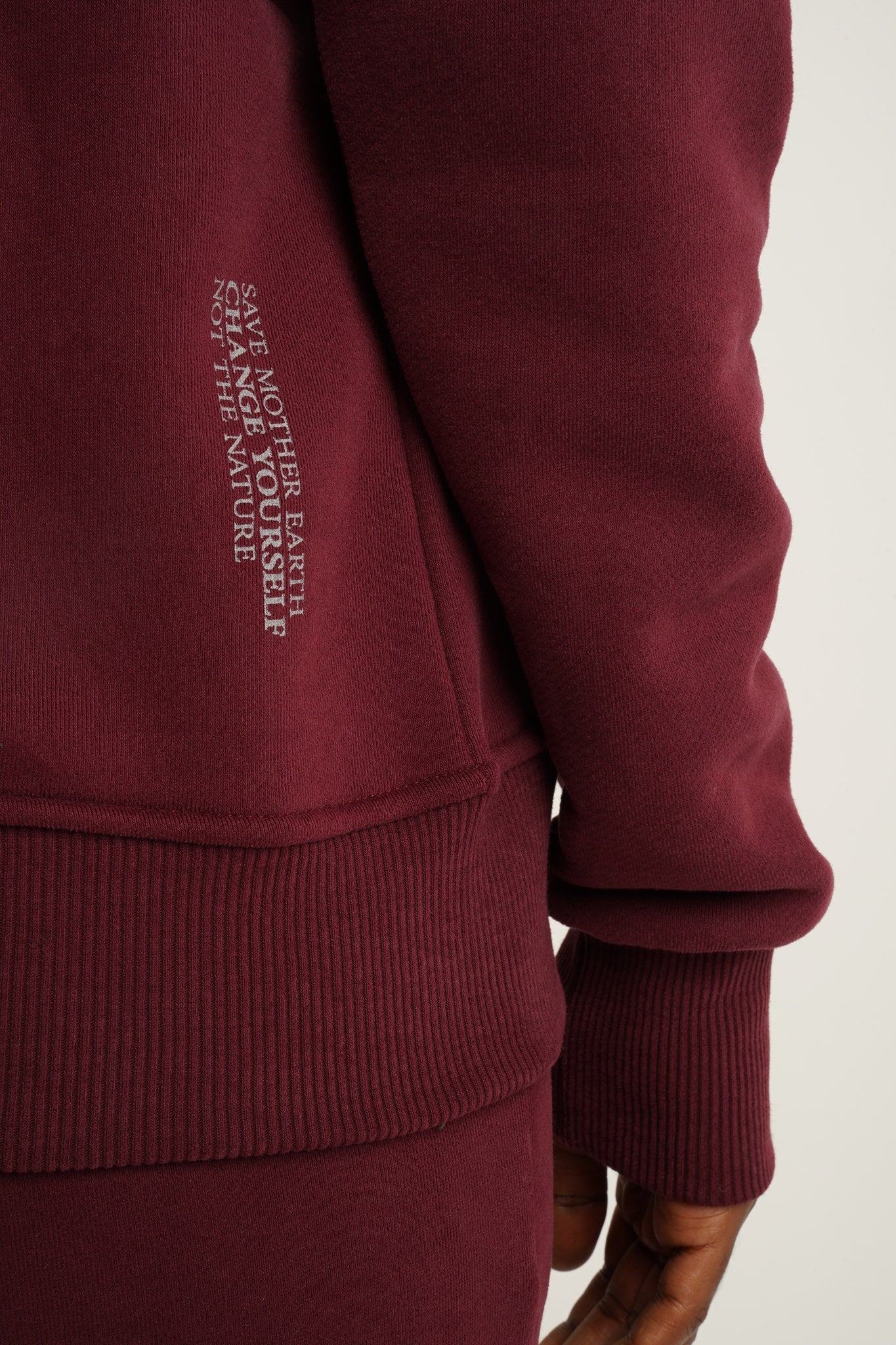 Bluza uszyta jest z naszej flagowej, grubej dzianiny, która nas wyróżnia. Jest ona gładka, ale przy tym bardzo mięsista. Od spodu posiada charakterystyczny splot diagonalny pokryty lekkim meszkiem, który w przyjemny sposób otula naszą skórę.