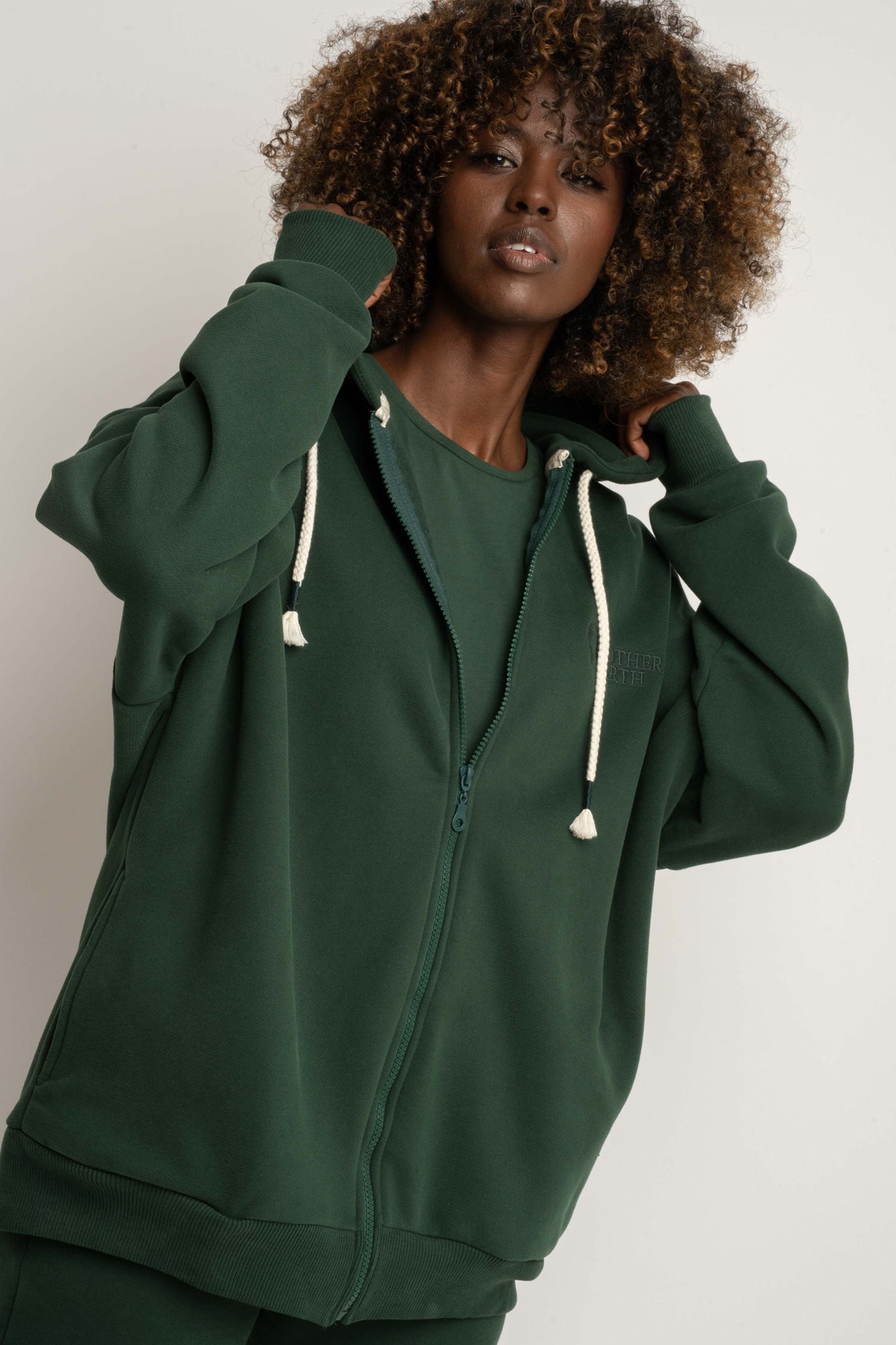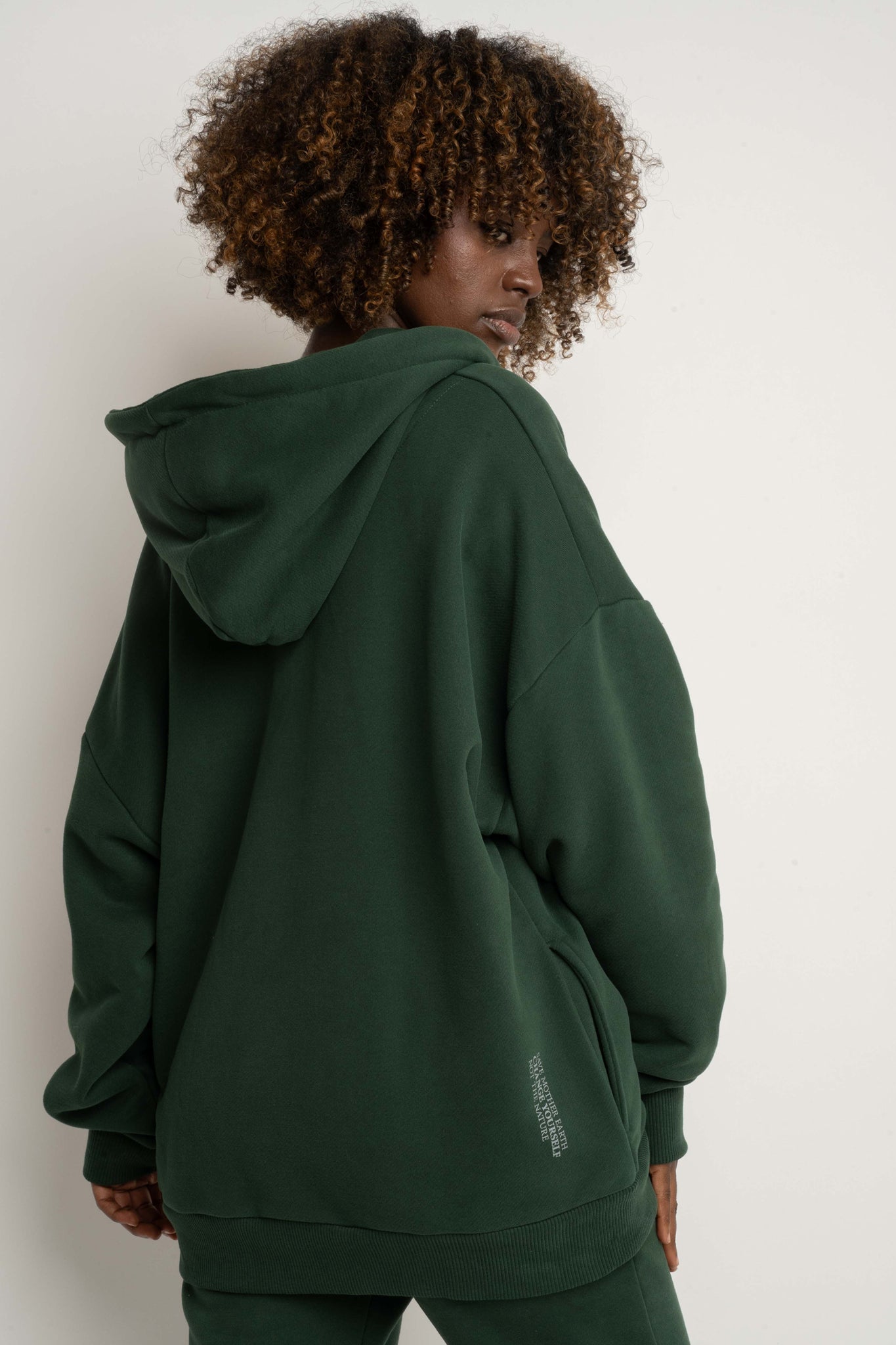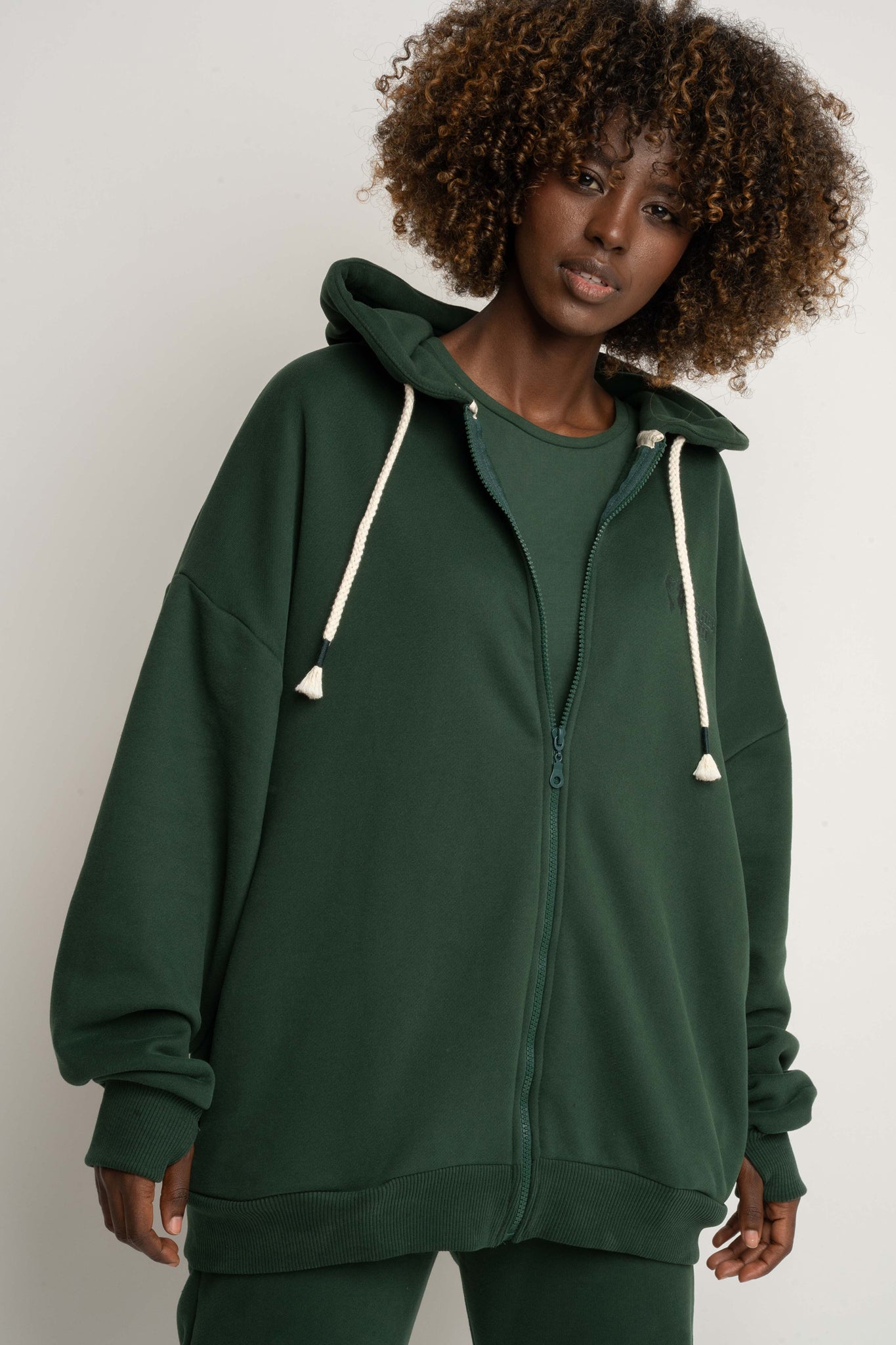 BLUZA Z KAPTUREM ROZPINANA CIEMNOZIELONA -NIKO