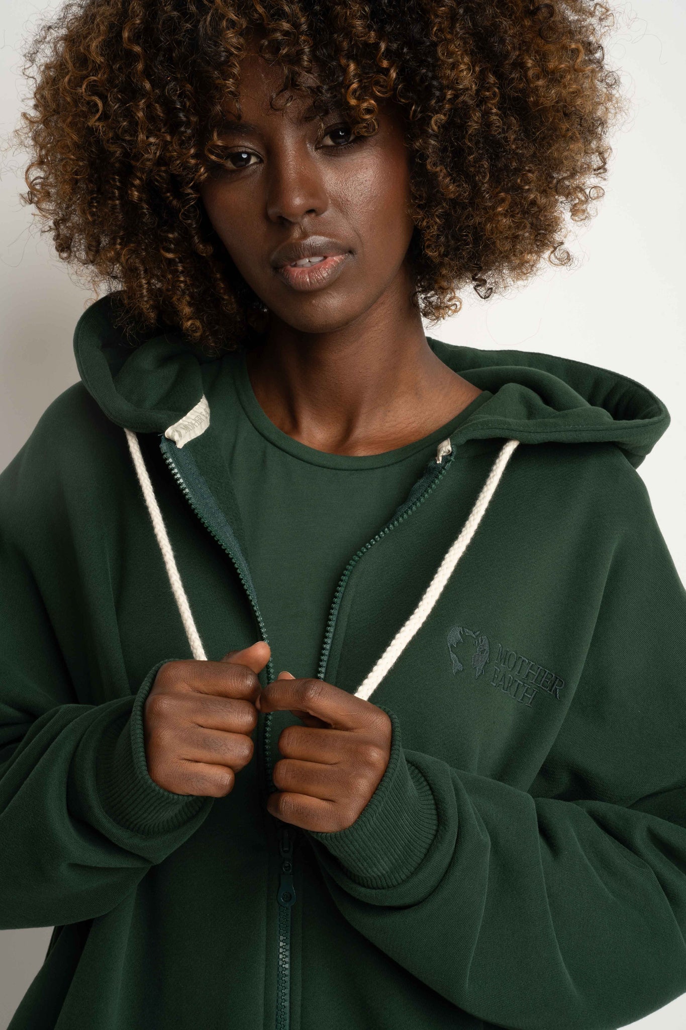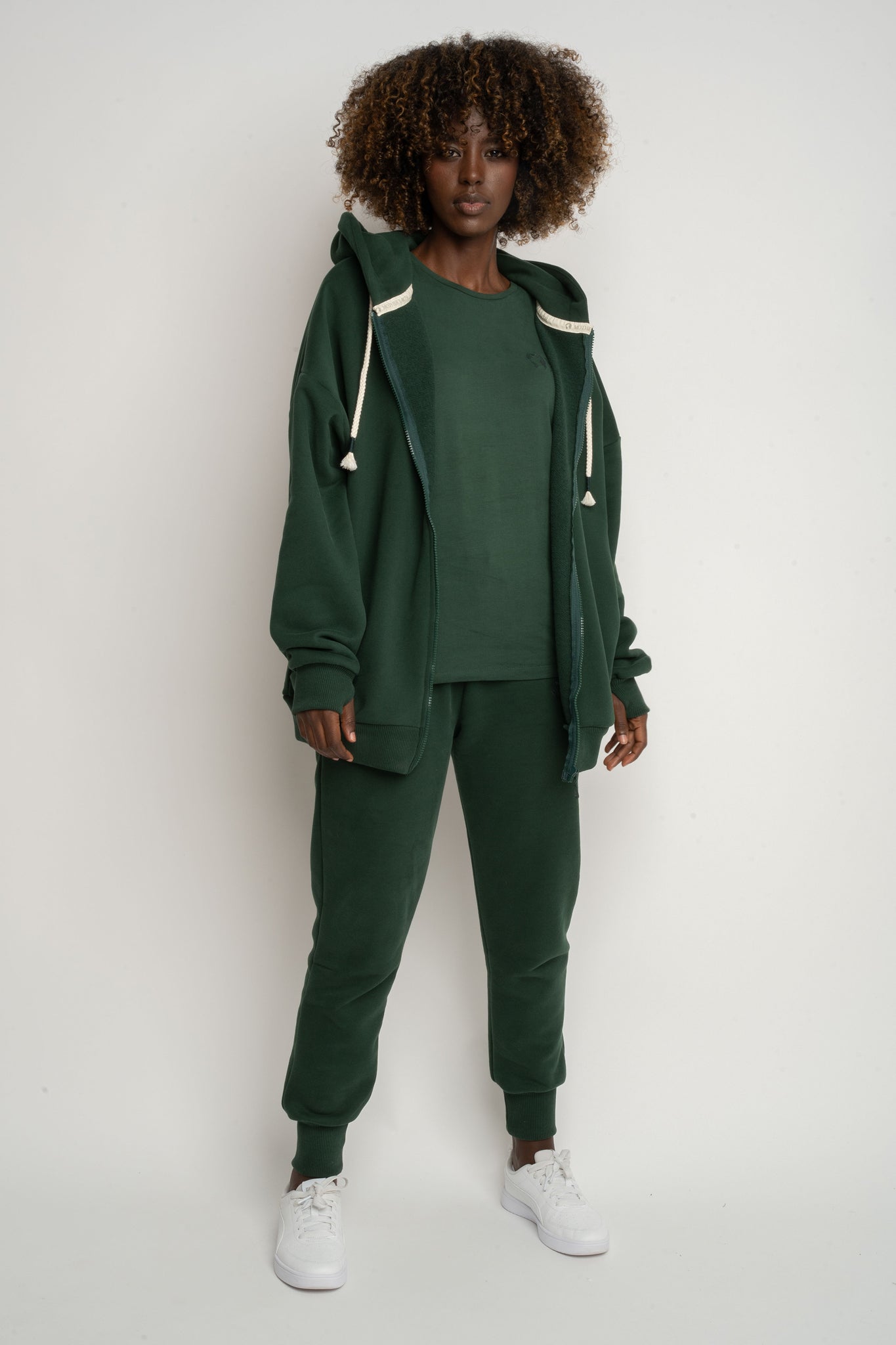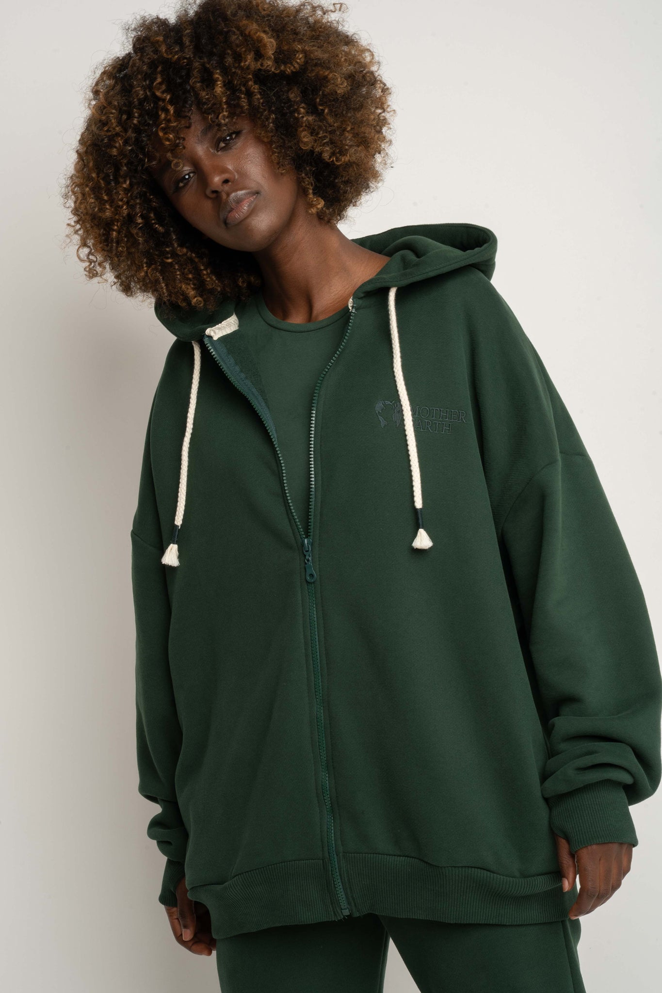 BLUZA Z KAPTUREM ROZPINANA CIEMNOZIELONA -NIKO
