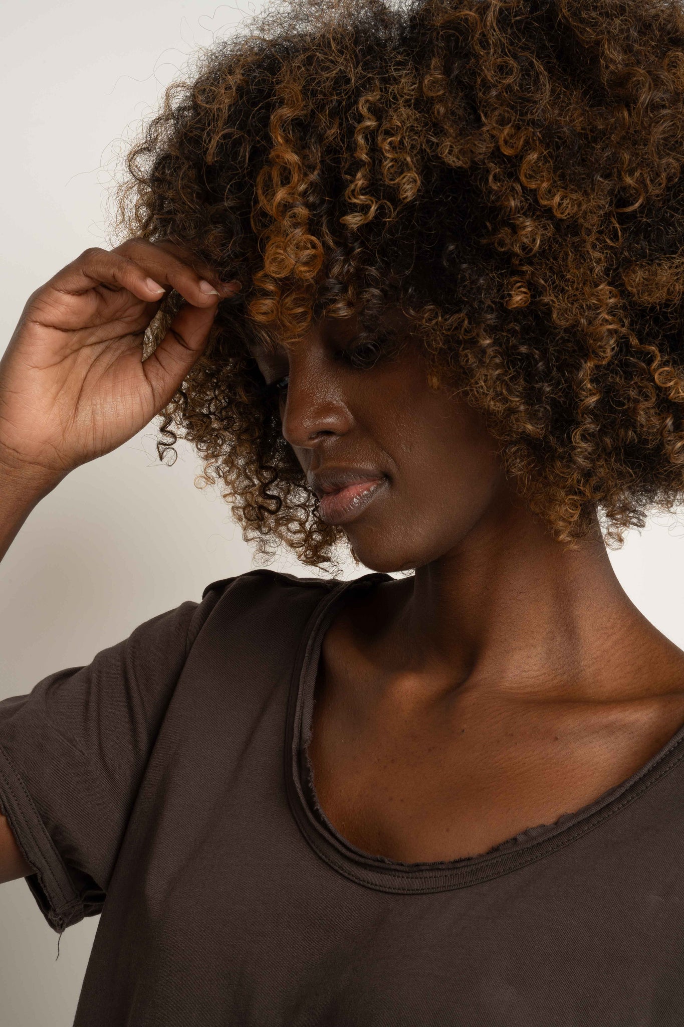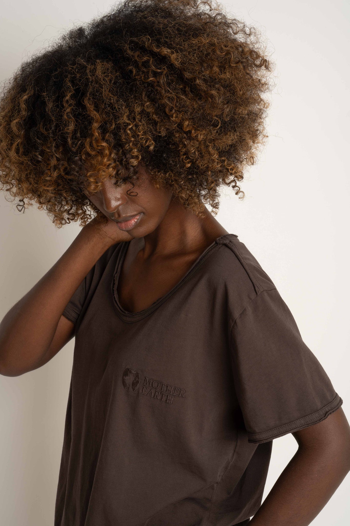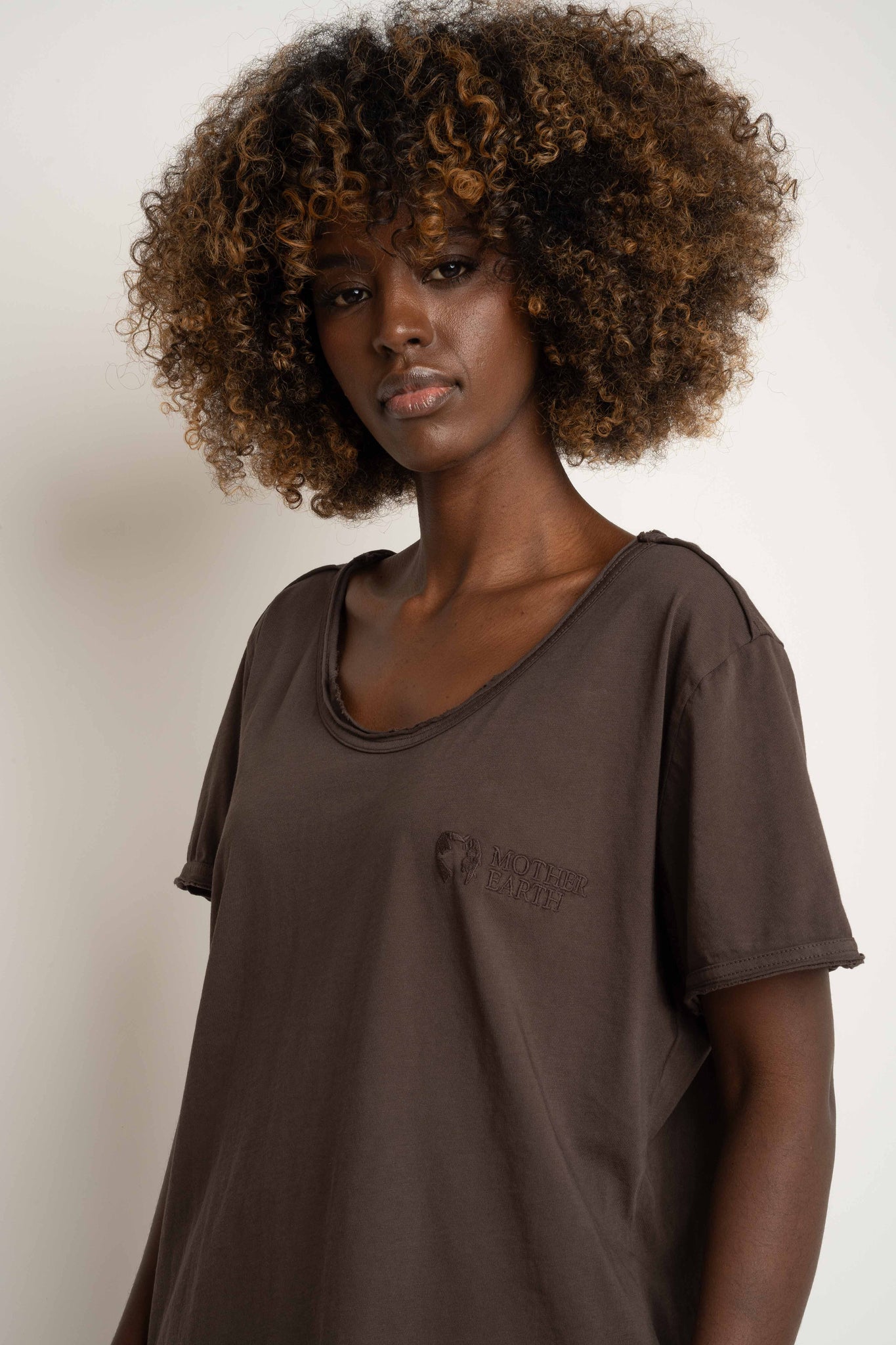 T-SHIRT OVERSIZE Z DELIKATNYM EFEKTEM SPRANIA CIEMNOBRĄZOWY - NUSA