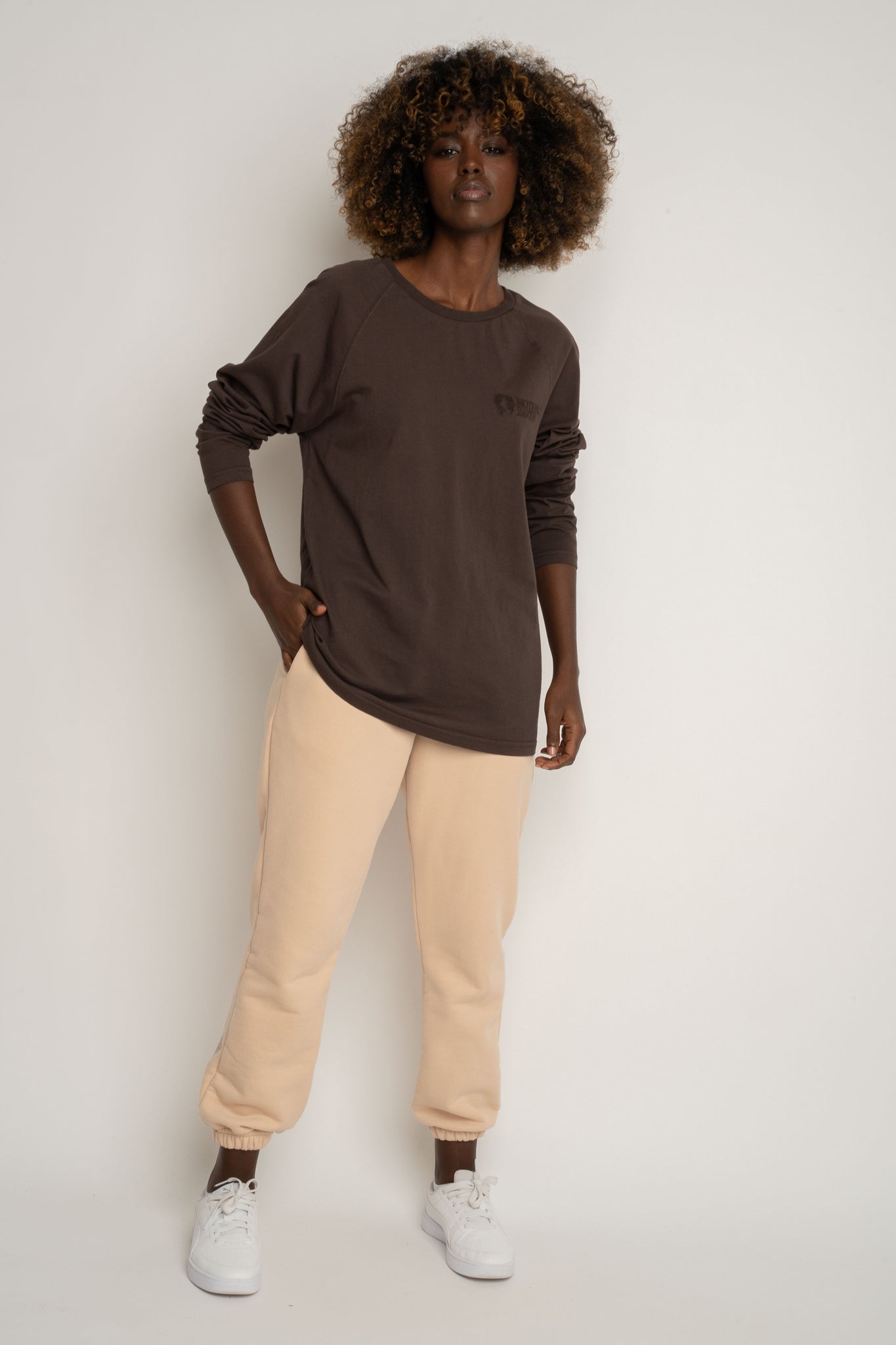 Oversizowa bluzka z długim rękawem OBILATU, uszyta w 100% z bawełny posiadającej certyfikat GOTS, łączy w sobie wygodę, styl i ekologiczną świadomość. Materiał pochodzący z ekologicznych upraw jest delikatny dla skóry i przyjemny w dotyku, dzięki czemu noszenie jej to czysty komfort przez cały dzień. Ten model został zaprojektowany w fasonie oversize o kroju unisex, co sprawia, że świetnie układa się na każdej sylwetce i pasuje zarówno kobietom, jak i mężczyznom. Klasyczny okrągły dekolt dodaje minimalistycznego wyrazu, a długi raglanowy rękaw zapewnia pełną swobodę ruchów i podkreśla sportowo-casualowy charakter bluzki. Subtelny efekt delikatnego sprania nadaje całości lekko vintage’owego looku, zachowując jednocześnie uniwersalność i czystość formy. Oddychająca, 100% bawełna z certyfikatem GOTS gwarantuje komfort noszenia niezależnie od pory roku, a minimalistyczny haft z logo na klatce piersiowej dodaje nowoczesnej, stonowanej elegancji. OBILATU to bluzka, która naturalnie wpisuje się w każdą szafę — unisex, ponadczasowa, komfortowa i idealna jako baza codziennych stylizacji. Doskonale współgra z jeansami, dresami czy legginsami, tworząc look pełen luzu i świadomego stylu. Nasza modelka ma 167 cm. wzrostu i ma na sobie rozmiar XS/S.