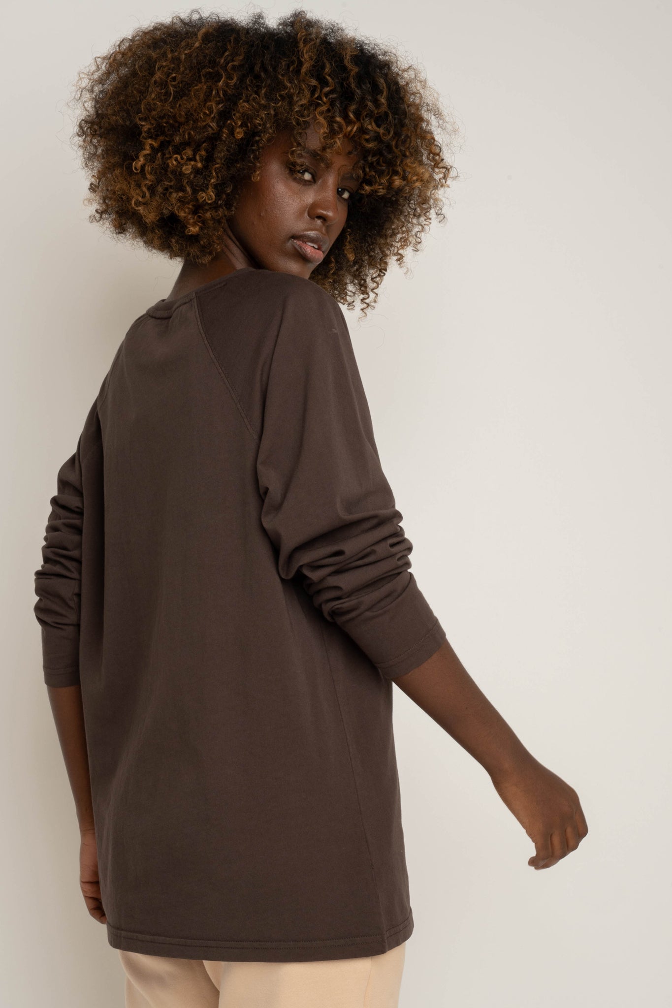 LONGSLEEVE OVERSIZE Z DELIKATNYM EFEKTEM SPRANIA CIEMNOBRĄZOWY - OBILATU