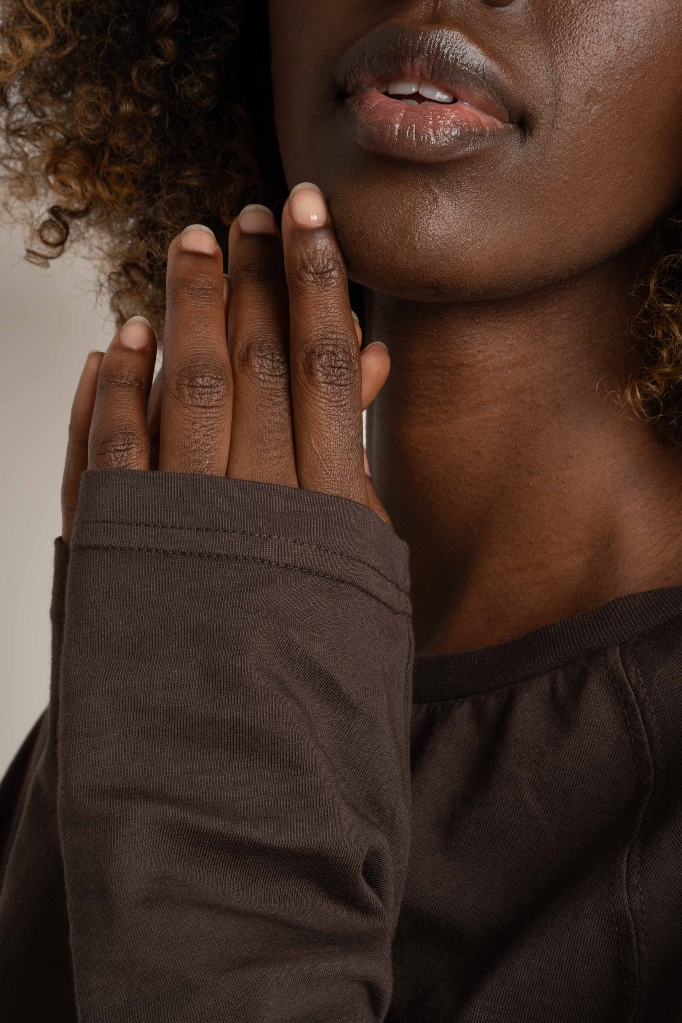 LONGSLEEVE OVERSIZE Z DELIKATNYM EFEKTEM SPRANIA CIEMNOBRĄZOWY  - OBILATU LONGSLEEVE OVERSIZE Z DELIKATNYM EFEKTEM SPRANIA CIEMNOBRĄZOWY  - OBILATU