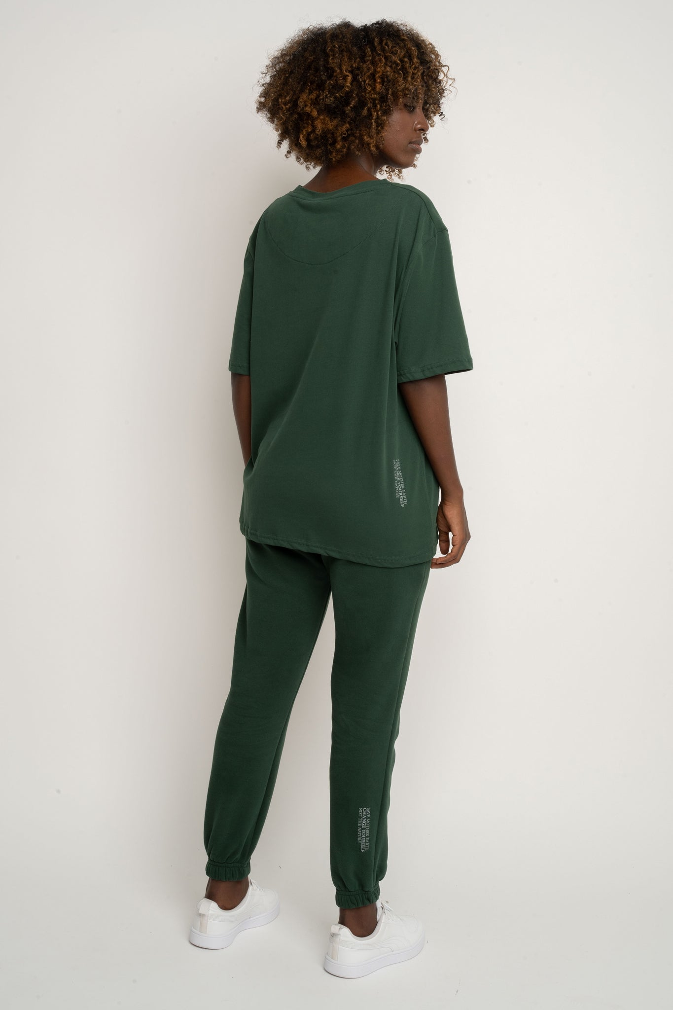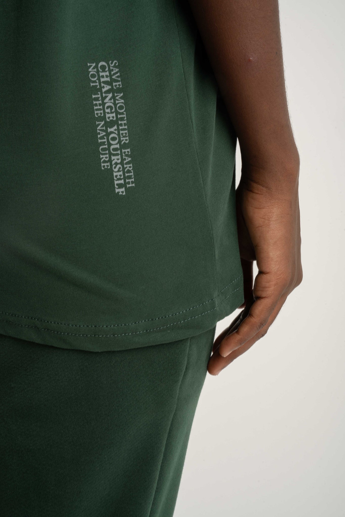Jeśli bliskie są Ci wartości takie jak troska o planetę, świadome wybory i komfort na co dzień, ten T-shirt został stworzony właśnie z myślą o Tobie. Model OYSTER to coś więcej niż codzienna koszulka – to manifest Twojego stylu życia. Wykonany z wysokogatunkowej, przyjemnej w dotyku bawełny, zapewnia miękkość i oddychalność przez cały dzień. Oversize'owy krój gwarantuje pełną swobodę ruchów, niezależnie od tego, czy spędzasz dzień aktywnie w mieście, czy odpoczywasz w domowym zaciszu. Uniwersalny design sprawia, że T-shirt z łatwością wpisuje się zarówno w minimalistyczne, jak i streetwearowe stylizacje. Subtelny haft z przodu z napisem „Mother Earth” to hołd dla natury i ukłon w stronę mody odpowiedzialnej. Tył koszulki zdobi delikatny nadruk przypominający o tym, że każda decyzja zakupowa ma znaczenie. Ten T-shirt został zaprojektowany z dbałością o szczegóły – od podwójnych szwów po wyważone proporcje rękawów i dekoltu. Kolorystyka inspirowana ziemią sprawia, że łatwo zestawić go z pozostałymi elementami garderoby – szczególnie z legginsami w tym samym odcieniu, tworząc modny i spójny total look. Nasza modelka ma 167 cm. wzrostu i ma na sobie rozmiar XS/S.
