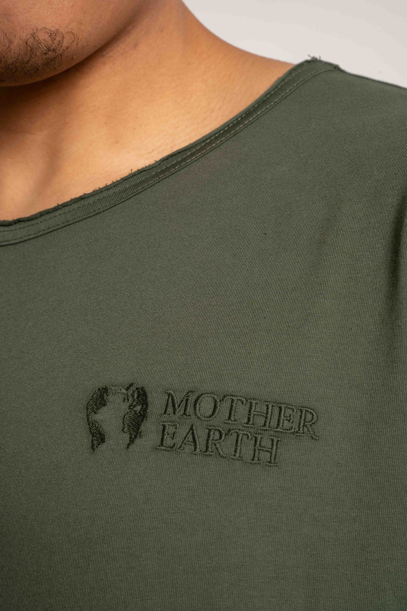 T-SHIRT OVERSIZE Z DELIKATNYM EFEKTEM SPRANIA ZIELONY - TOBALAI