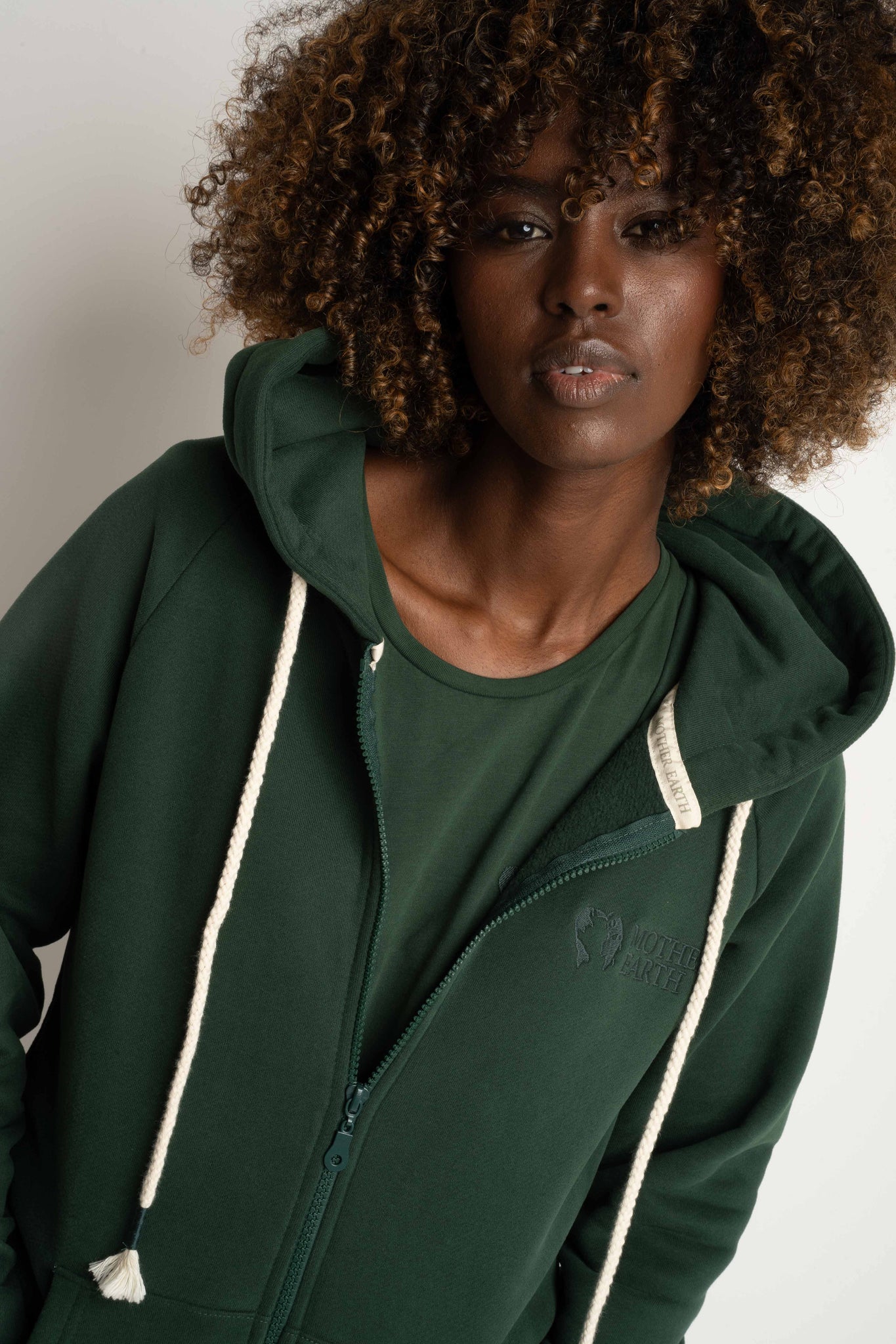 ROZPINANA BLUZA Z KAPTUREM CIEMNOZIELONA - ZANZIBAR